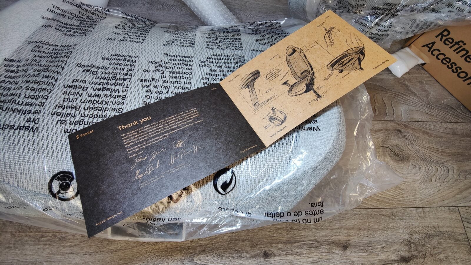 Przygotujcie się na dobry trening albo dłuższą pogawędkę z kurierem. Fractal Refine dociera bowiem do kupującego w podwójnym solidnym kartonie o sumarycznej wadze 40-50 kg, z czego ten wewnętrzny jest oczywiście właściwy. To w nim pod wielką planszą na temat składania roweru, znajdziecie podziękowania od producenta, szczegółową instrukcję obsługi, zestaw śrubek, potrzebny do poskręcania całości klucz imbusowy oraz oczywiście bardzo dobrze zabezpieczone elementy składowe fotela, bo: