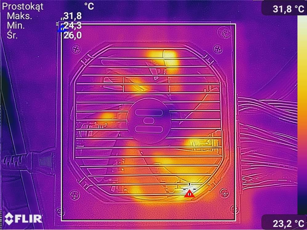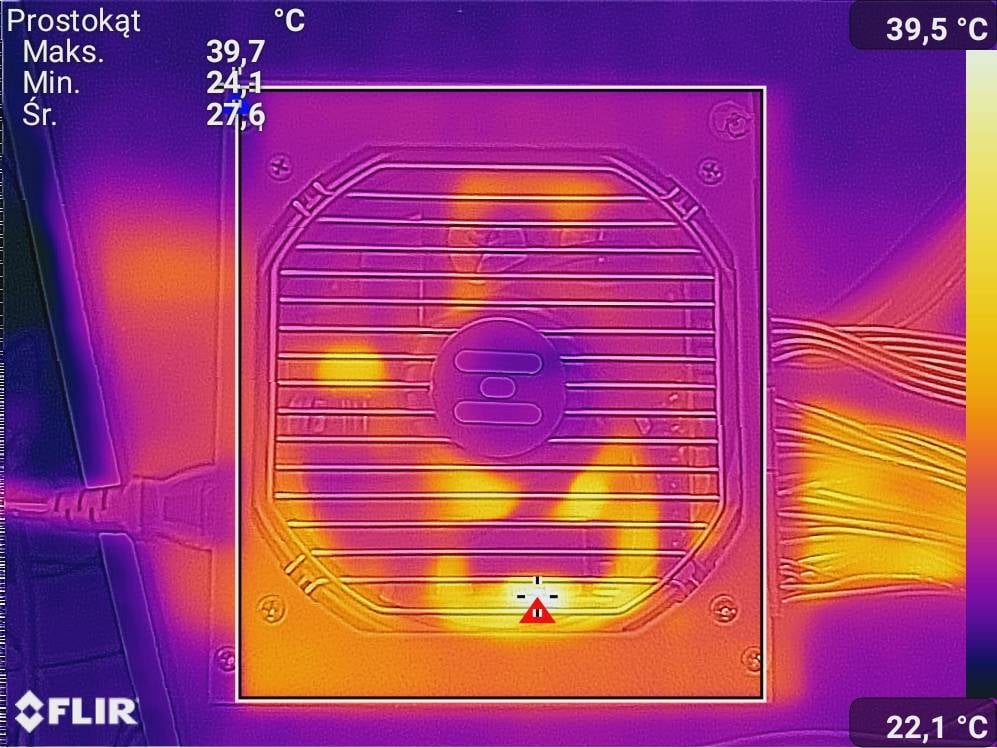 Wyniki testów są bardzo dobre. Napięcia są blisko idealnych i nie ma mocnych spadków pod obciążeniem. Spokojnie więc możecie sparować go z niepodkręconym i9-14900K i RTX 4090 – będą zapewnione odpowiednie warunki do pracy. W spoczynku, przy włączonym trybie Eco, zasilacz działa pasywnie. Pod obciążeniem jest również cichy i nie powinien przeszkadzać w szczególności, jeśli macie AiO 360. Temperatury są również bez zarzutów.