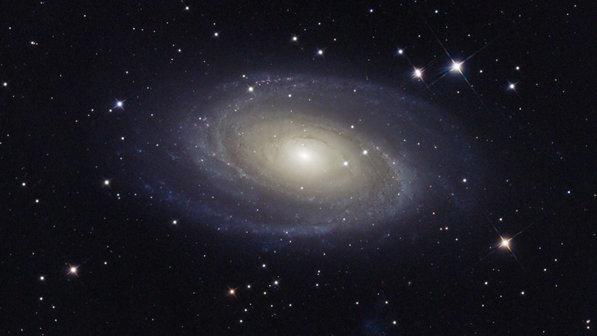Na zdjęciu widoczne są delikatne szczegóły rozległych ramion spiralnych M81, gdzie jasne, niebieskawe obszary świadczą o wciąż aktywnym procesie formowania się gwiazd. Jądro galaktyki świeci natomiast połączonym światłem starszych, czerwonych gwiazd krążących wokół ogromnej centralnej czarnej dziury. Warto tutaj podkreślić, że supermasywna czarna dziura w centrum tej konkretnej galaktyki jest aż 15 razy masywniejsza od supermasywnej czarnej dziury w centrum naszej Drogi Mlecznej.