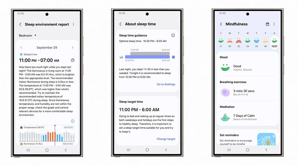 Na tym nie koniec, ponieważ południowokoreański gigant zaktualizował też aplikację Samsung Health, wprowadzając w niej dodatkowe, zaawansowane funkcje, które wykraczają poza dotychczasową analizę snu. Obejmują one: szczegółowe raporty o środowisku snu, personalizowane wskazówki dotyczące optymalnego czasu spania oraz holistyczne monitorowanie parametrów fizjologicznych.