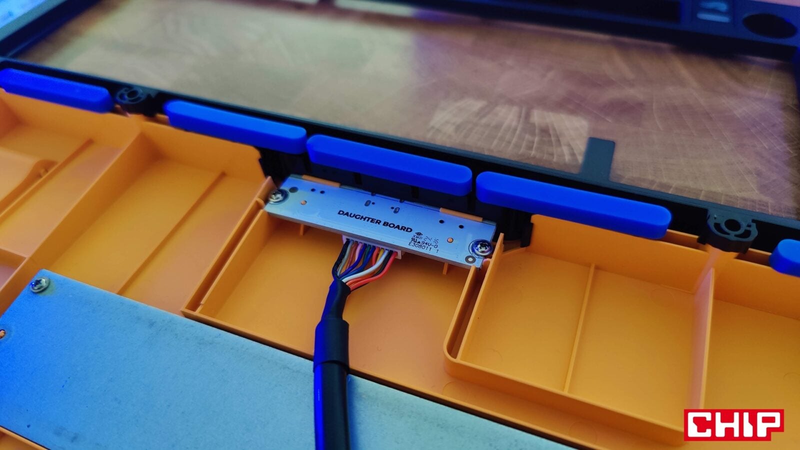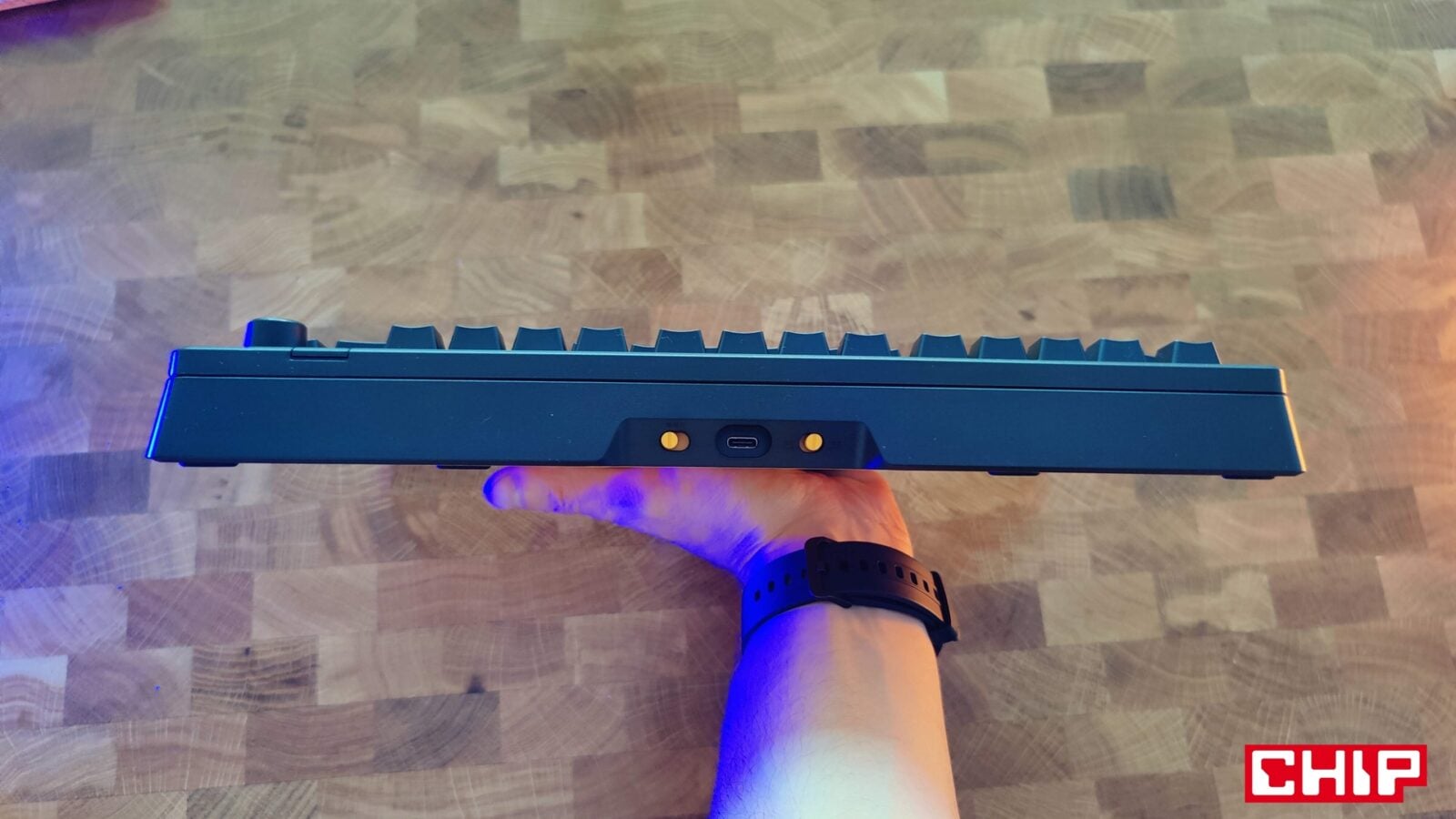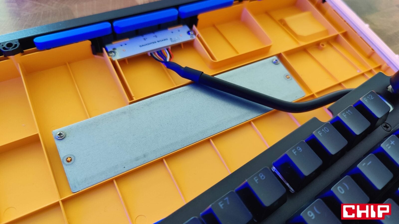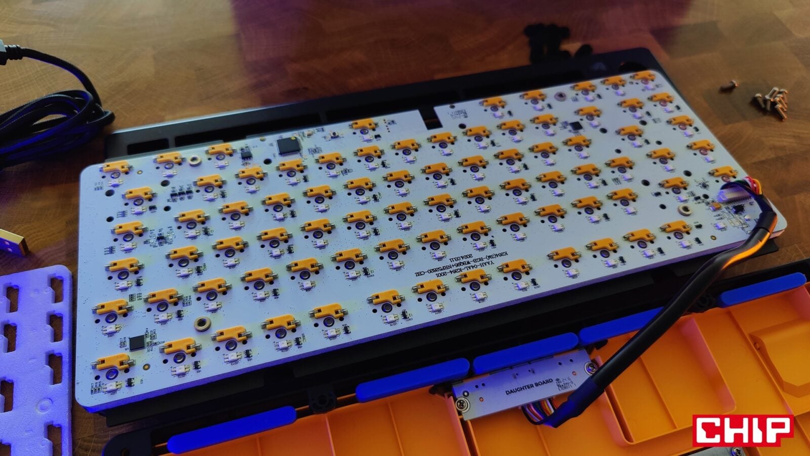 Poza tym w pudełku znajdziecie instrukcję obsługi, naklejki, broszurę o przełącznikach właśnie, dwa wymienne gumowe gaskety, dwa O-Ringi dla przełączników (możecie zweryfikować ich wpływ na charakter kliku), cztery zastępcze klawisze w przypadku korzystania z komputerów Mac, zapasowe śrubki, śrubokręt oraz przewód USB-A do USB-C w solidnym oplocie i z opaską na rzep do prostego cable-managementu na biurku. Innymi słowy, jest tego sporo, a sam śrubokręt przyda się wam nie tylko do odkręcenia zestawu ośmiu śrubek pod gumowymi zaślepkami na spodzie, które pełnią jednocześnie funkcję antypoślizgową. Mały skrawek gumy znalazł się też na rozkładanych plastikowych nóżkach, dorzucających dodatkowe stopnie nachylenia do i tak imponującego nachylenia podstawowego, które wymusza sama konstrukcja klawiatury.