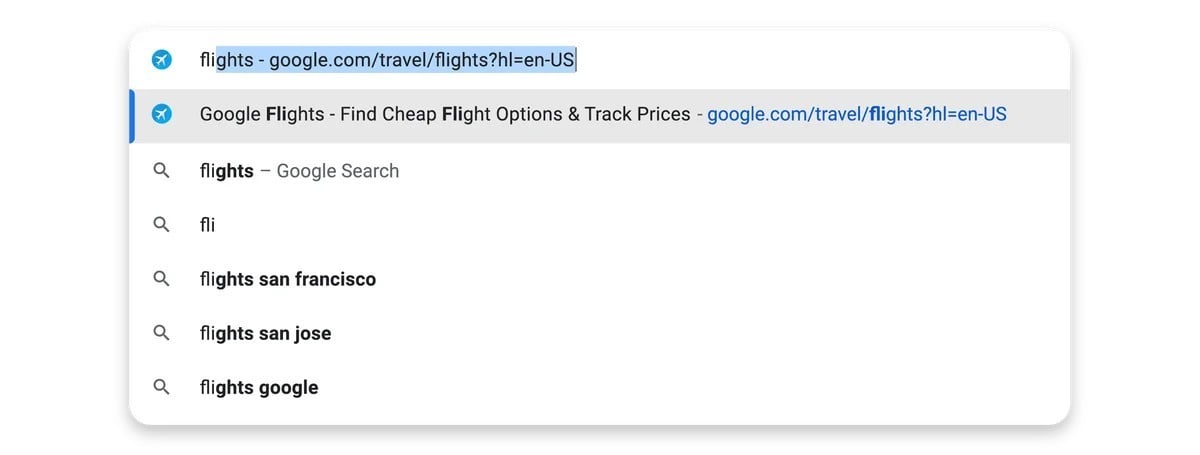 Autouzupełnianie adresów stało się teraz inteligentniejsze. Wcześniej Chrome automatycznie uzupełniał adres URL wtedy, gdy wpisano jego początek poprawnie. Teraz – najpierw w wersji komputerowej – pasek adresu będzie uzupełniał URL na podstawie dowolnego słowa, którego wcześniej użyliśmy do wyszukiwania witryny. Google podaje tutaj przykład, że jeśli wcześniej szukaliśmy „lotów” i trafiliśmy na stronę Loty Google, to później właśnie ten adres będzie uzupełniał się automatycznie po wyszukiwaniu tej frazy.