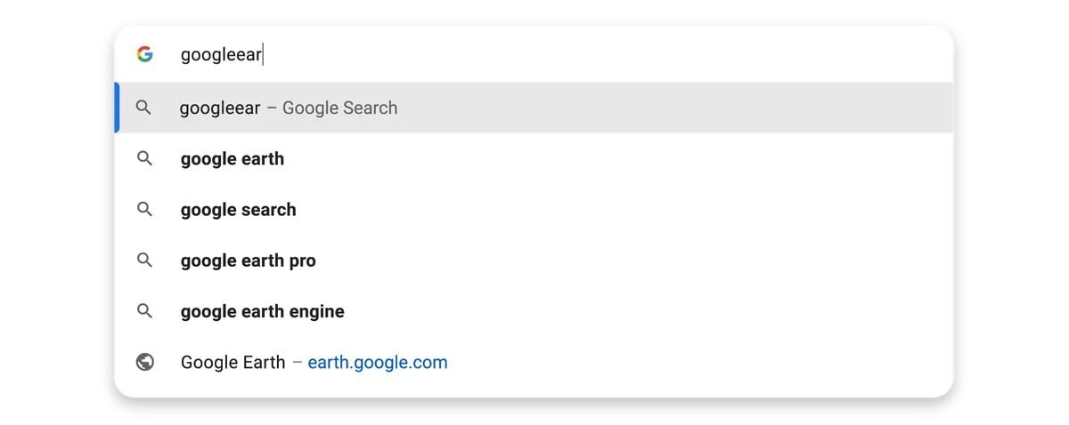 Następną zmianą są sugestie popularnych witryn, niezależnie od tego, czy już je wcześniej odwiedzaliśmy lub, czy wpisaliśmy błędnie adres. Na zrzucie widocznym poniżej widać, że po rozpoczęciu wpisywania frazy przypominającej „Google Earth”, a na liście rozwijanej pojawia się sugestia tej właśnie strony. Ta funkcja była dostępna wcześniej, ale dopiero teraz ignoruje literówki i sugeruje witryny spoza naszej historii wyszukiwania.