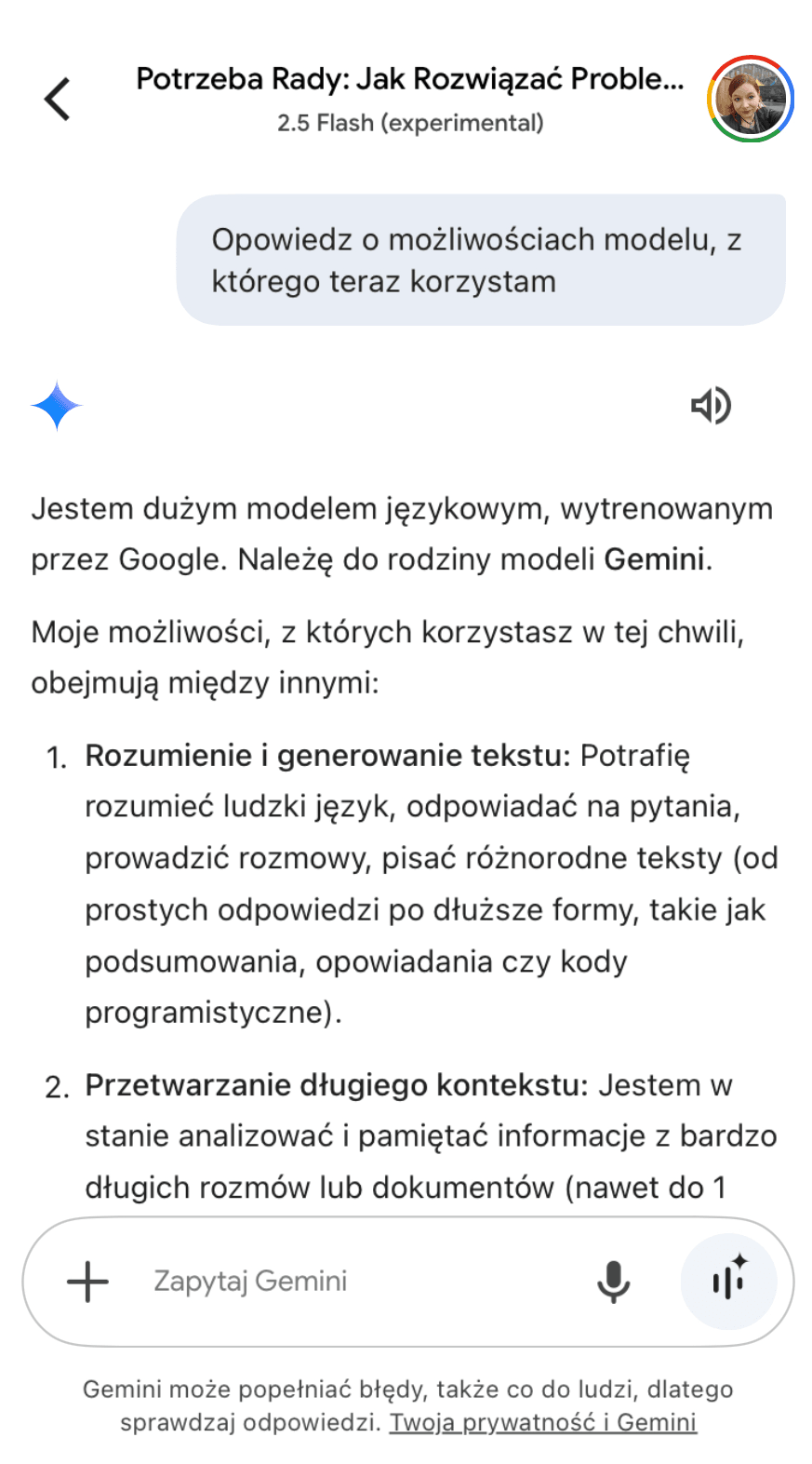 Gemini 2.5 Flash jest już dostępny dla wszystkich w aplikacji Gemini. By z niego skorzystać, trzeba wybrać odpowiedni model z menu w górnej części aplikacji. Model ten jest oznaczony jako eksperymentalny.