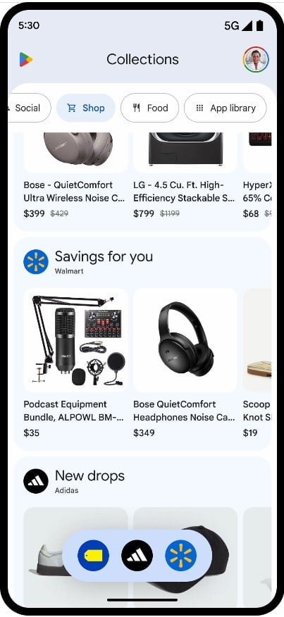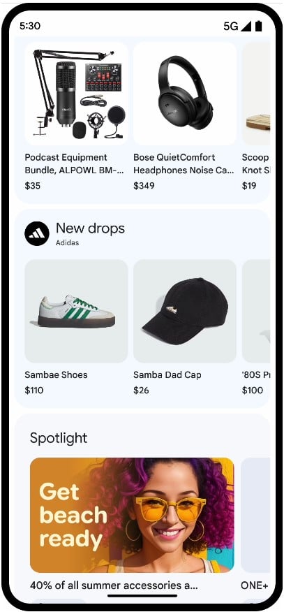 - Sklep – pomoże znaleźć przedmioty, których wcześniej szukaliśmy. Kliknięcie w niego przeniesie nad do odpowiedniej aplikacji zainstalowanej na naszym telefonie, bez konieczności samodzielnego jej otwierania i przechodzenia do konkretnej sekcji.