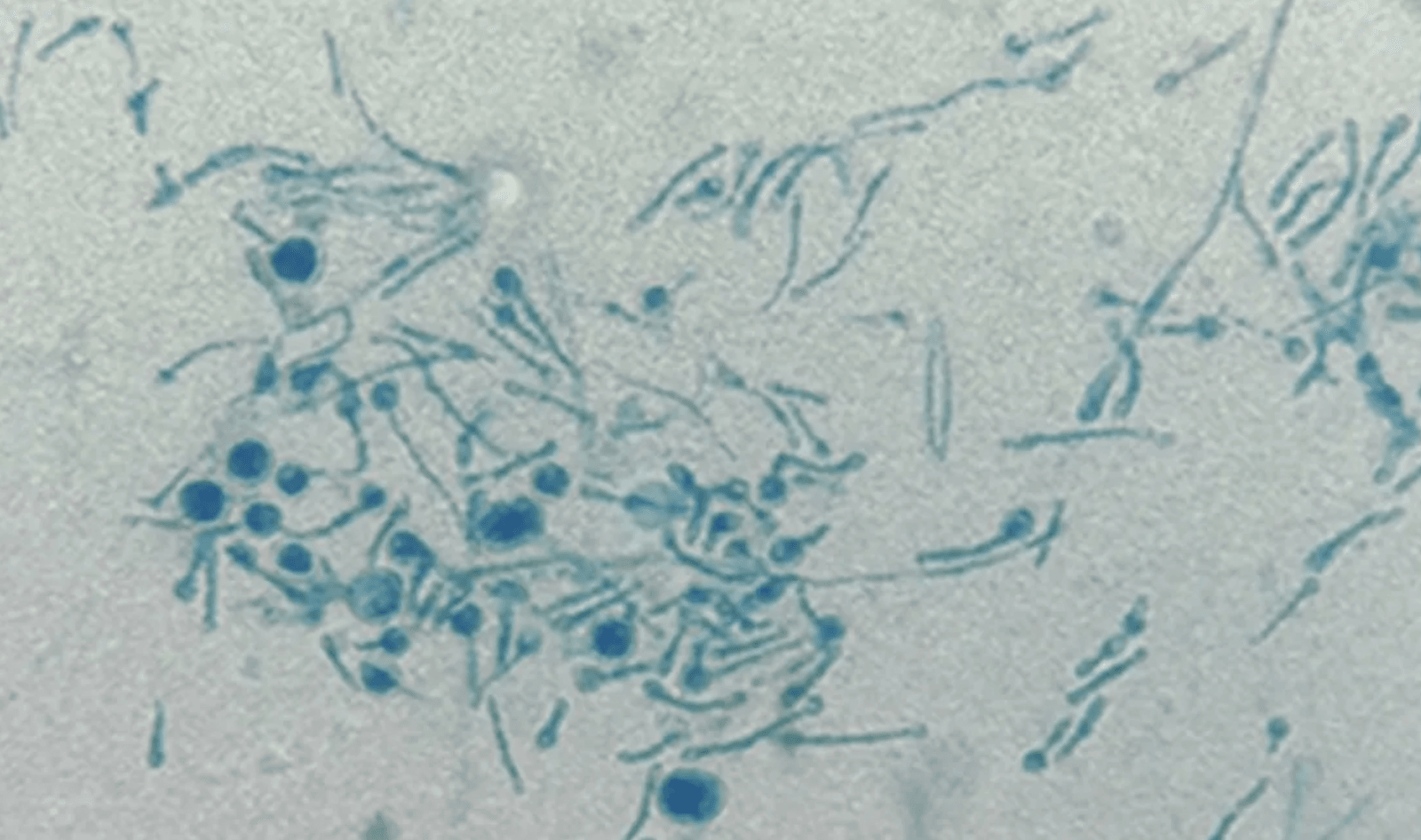 61-letni pacjent z Indii szukał pomocy medycznej z powodu szeregu standardowych objawów chorobowych, m.in. zachrypniętego gardła, zmęczenia, kaszlu i trudności w przełykaniu. Zdjęcie rentgenowskie klatki piersiowej wykonane w szpitalu nie wykazało żadnych nieprawidłowości, ale tomografia komputerowa szyi wykazała ropień, z którego pobrano próbki i wysłano do analizy.