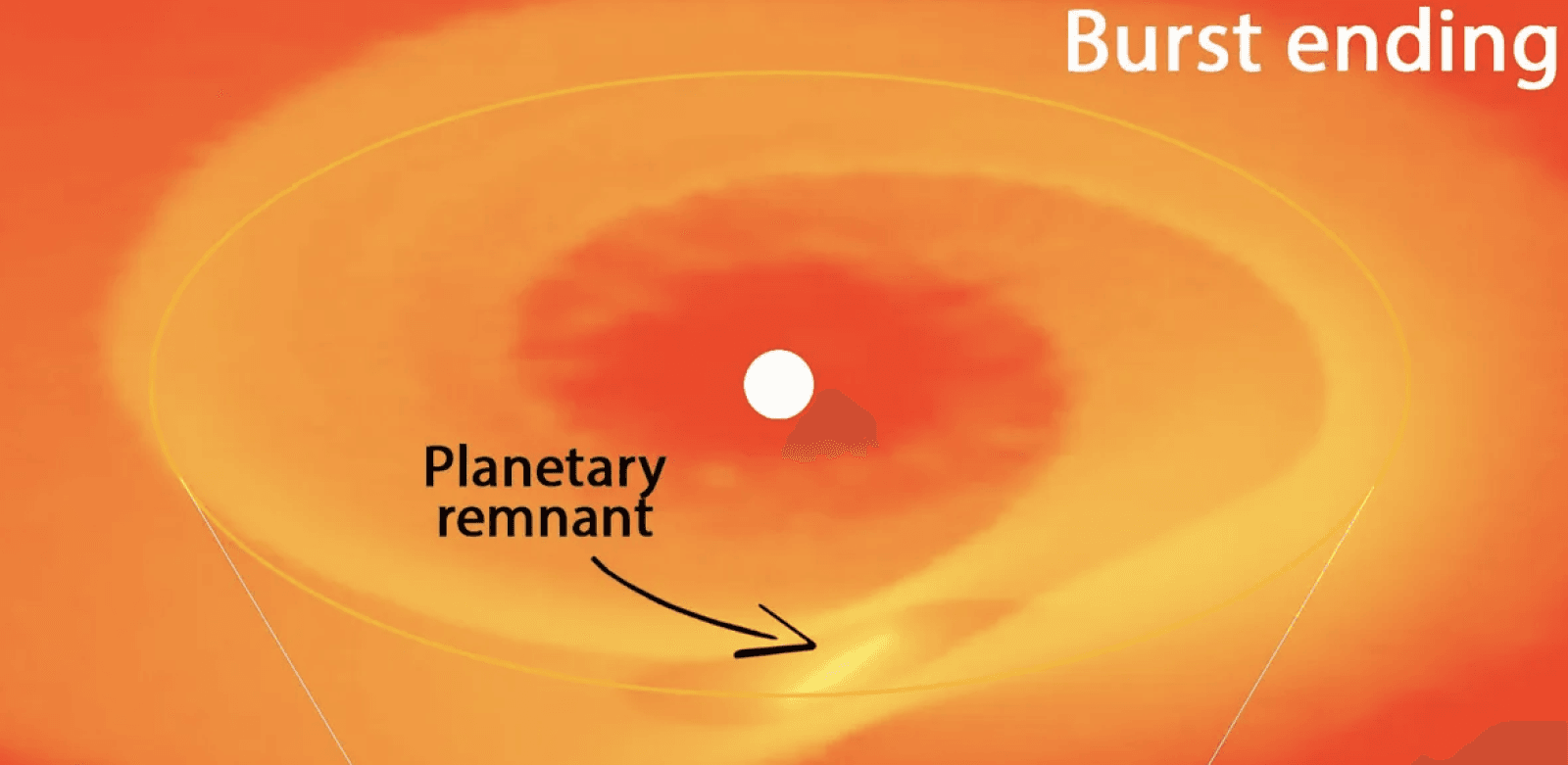 Uczeni przeprowadzili symulacje dla FU Orionis, dodając gazową planetę (podobną do Jowisza) uformowaną daleko w dysku w wyniku niestabilności grawitacyjnej. Wykazano, że materia z niej migruje w kierunku gwiazdy macierzystej, a osiągając równowartość 1/10 odległości między Ziemią a Słońcem jest tak gorąca, że zapala zewnętrzne atmosfery planety. Ta dosłownie płonie. Z punktu widzenia astronomii, planeta staje się źródłem świeżej materii i swoistego “pokarmu”, którego gwiazda potrzebuje. W efekcie obserwujemy wzrost magnitudo.