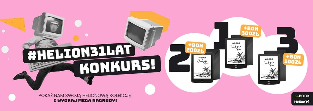 Urodzinowy konkurs z okazji urodzin Helion trwa od 16 do 30 września 2022 roku. Do wygrania są trzy czytniki e-booków InkBOOK Calypso Plus Black oraz bony na zakupy w wysokości 100, 200 oraz 300 zł.