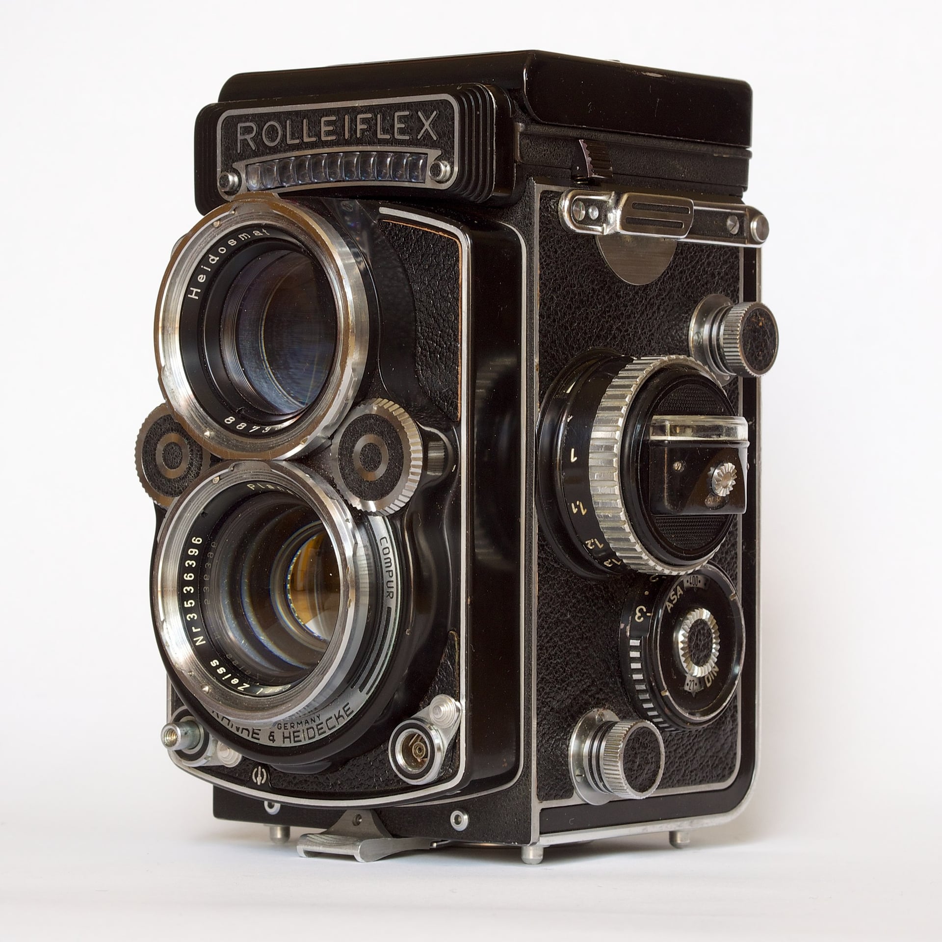 Próby usprawnienia kadrowania i nastawiania ostrości spowodowały powrót na początku lat 30 XX wieku do wcześniejszych koncepcji wykorzystania matówki i lustra. W 1929 roku firma Franke & Heidecke zaprezentowała pierwszy model swojej średnioformatowej lustrzanki dwuobiektywowej nazwanej Rolleiflex. W konstrukcji tego typu dolny obiektyw odpowiadał za naświetlanie filmu, a górny za rysowanie obrazu na matówce – a ponieważ były ze sobą sprzężone, ostry obraz na matówce oznaczał także ostry obraz na filmie. Format zdjęcia był kwadratowy, aparat trzymało się na wysokości brzucha i patrzyło z góry na odwrócony stronami obraz na matówce.