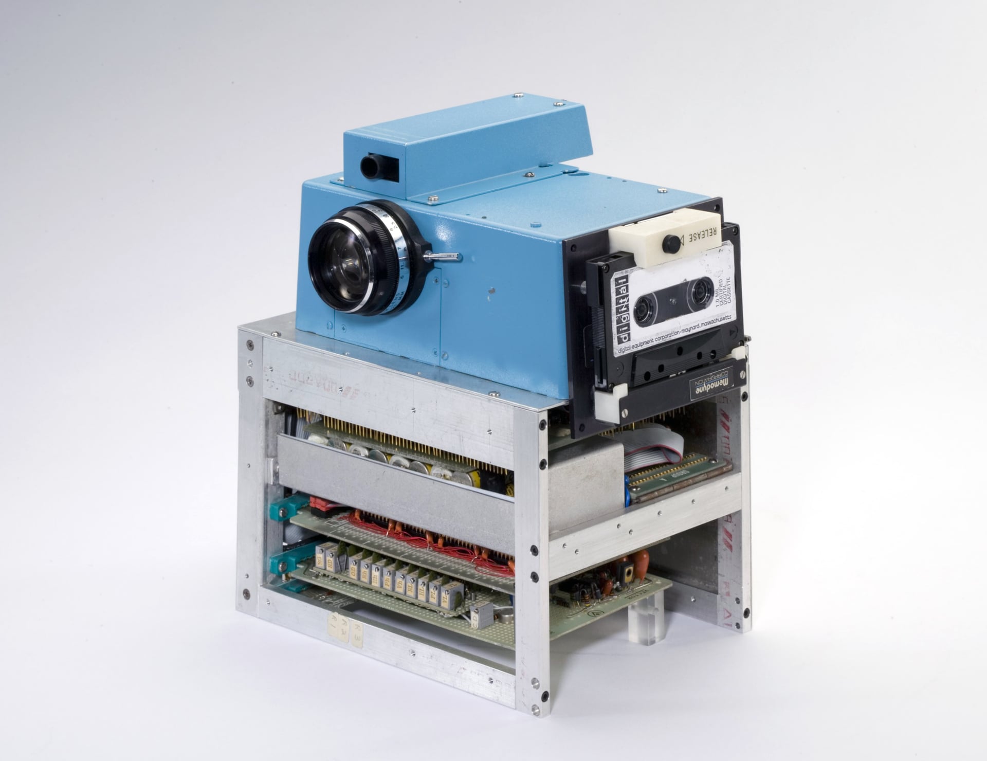 Próby zaprzęgnięcia elektroniki do zapisu obrazu statycznego są tak stare, jak telewizja i poniekąd to właśnie to medium jest za nie odpowiedzialne – dlatego też pierwsze urządzenia zbudowane były w oparciu o telewizyjną lampę obrazową i rejestrowały obraz analogowo na taśmach. Wartość praktyczna takich rozwiązań była żadna, podobnie jak jakość „zdjęć”. W 1969 roku firma Bell Laboratories wynalazła matrycę CCD, a w 1975 roku Kodak na bazie detektora CCD zbudował maszynę zdolną do rejestrowania monochromatycznego obrazu o rozdzielczości 100 x 100 pikseli. Duże i ciężkie urządzenie zapisywało zdjęcia analogowo na taśmie magnetycznej (trwało to ponad 20 sekund na jeden obraz) i właściwie trudno je nazywać aparatem fotograficznym, lecz stało się prekursorem dla innych.
