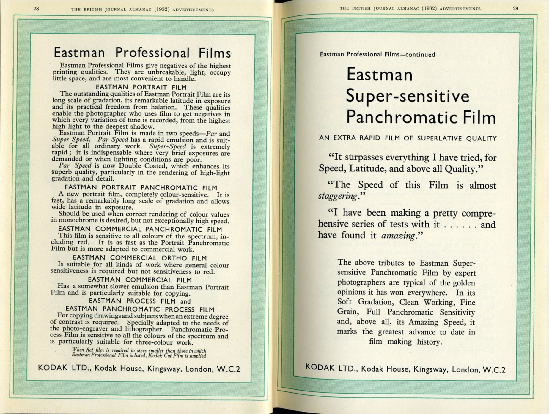 Błony i filmy panchromatyczne stały się szerzej dostępne w 1906 roku, lecz były znacznie droższe od ortochromatycznych, wymagały też trudniejszej obróbki, wykonywanej całkowicie bez dostępu światła, dość długo zatem koegzystowały na rynku. Na bazie emulsji panchromatycznych powstały także wersje mniej czułe na czerwień (ortopanchromatyczne) oraz z dodatkowo podwyższoną czułością na czerwień i podczerwień (superpanchromatyczne) – te ostatnie znakomicie sprawdzały się przy świetle sztucznym.