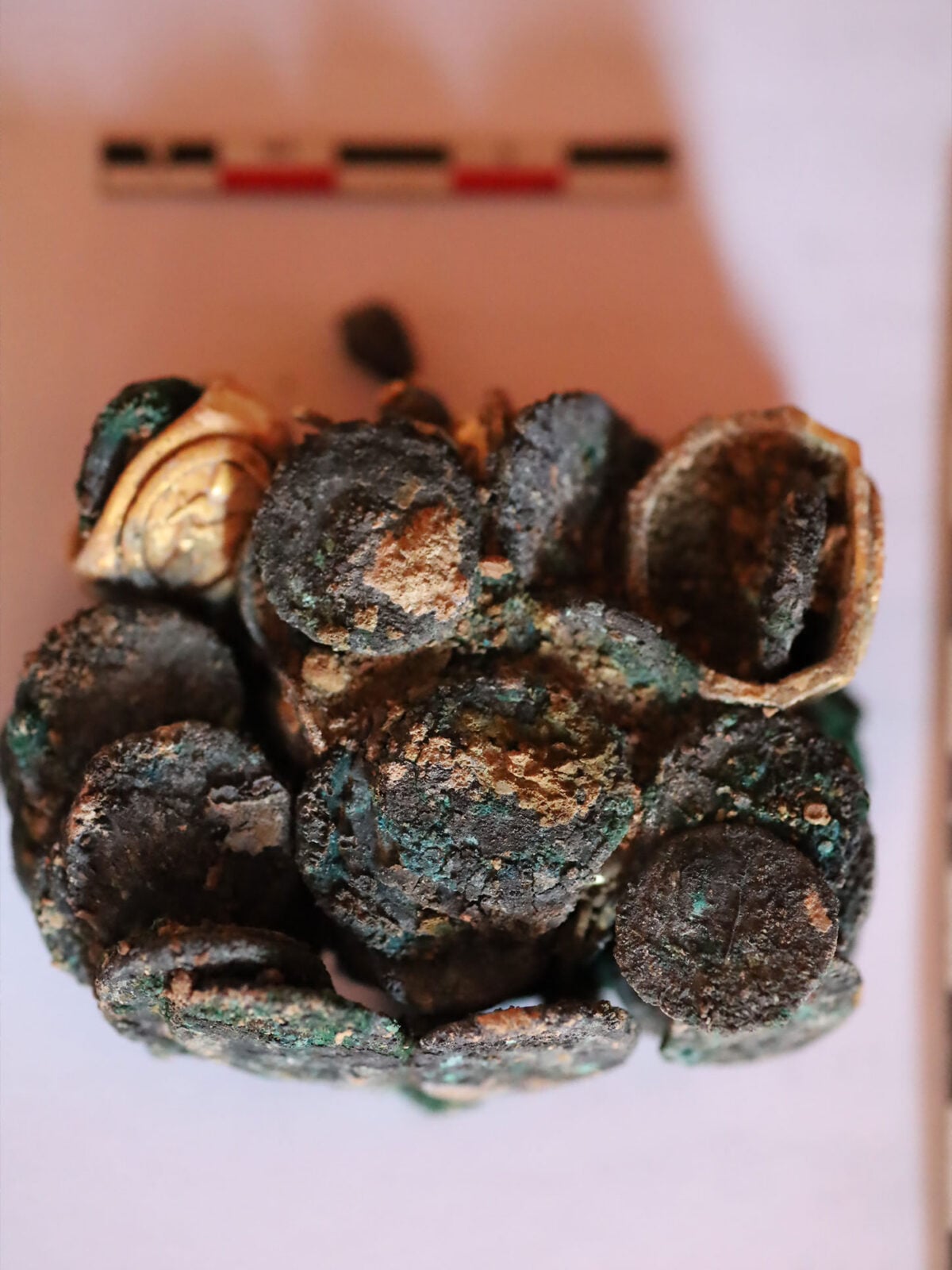 Archeolodzy pracujący w sektorze Poarta Mare – Turnul Mare natknęli się na niezwykłe świadectwo dramatycznych wydarzeń. Wstępne analizy wskazują, że kosztowności przechowywano w drewnianej skrzyni, która doszczętnie spłonęła podczas pożaru. Intensywne ciepło stopiło metale szlachetne, lecz jednocześnie utrwaliło zarys samego pojemnika. To rzadkie zjawisko pozwoliło naukowcom odtworzyć sposób przechowywania cennych przedmiotów.