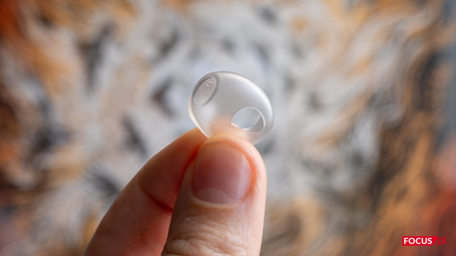 Huawei FreeBuds 6 to kolejna pozycja w portfolio Huawei, która nie blokuje ucha w pełni. Projekt słuchawek zakłada, że będą trzymać się we wcięciu międzyskrawkowym małżowiny usznej, a część emitująca dźwięk będzie spoczywać w muszli. Cała konstrukcja ma interesujący, organiczny kształt i moim zdaniem bardzo ładnie prezentuje się w uchu. Jeśli sztywne tworzywo sztuczne będzie zbyt twarde lub osoba nosząca będzie potrzebowała nieco więcej izolacji od otoczenia, można na słuchawkę założyć silikonową nakładkę, która nieco ją powiększy. W zestawie znajdują się trzy rozmiary nakładek.