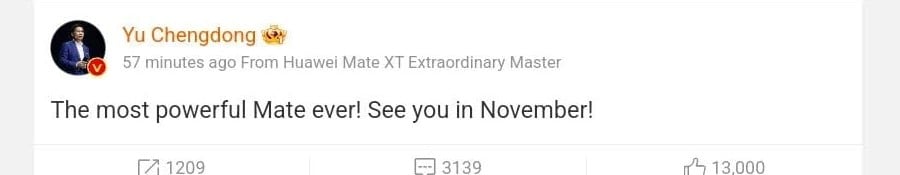 Co prawda firma nie zdradziła dokładniej daty, ale jeśli wierzyć przeciekom stanie się to już 19 listopada, a więc za nieco ponad twa tygodnie. Niestety oprócz tej zapowiedzi Huawei nie ujawnił niczego więcej i w kwestii ewentualnej specyfikacji musimy polegać na nieoficjalnych raportach. Te zwiastują pojawienie się czterech modeli – Mate 70, Mate 70 Pro, Mate 70 Pro+ i Mate 70 Ultimate Design, podobnie jak w zeszłym roku.
