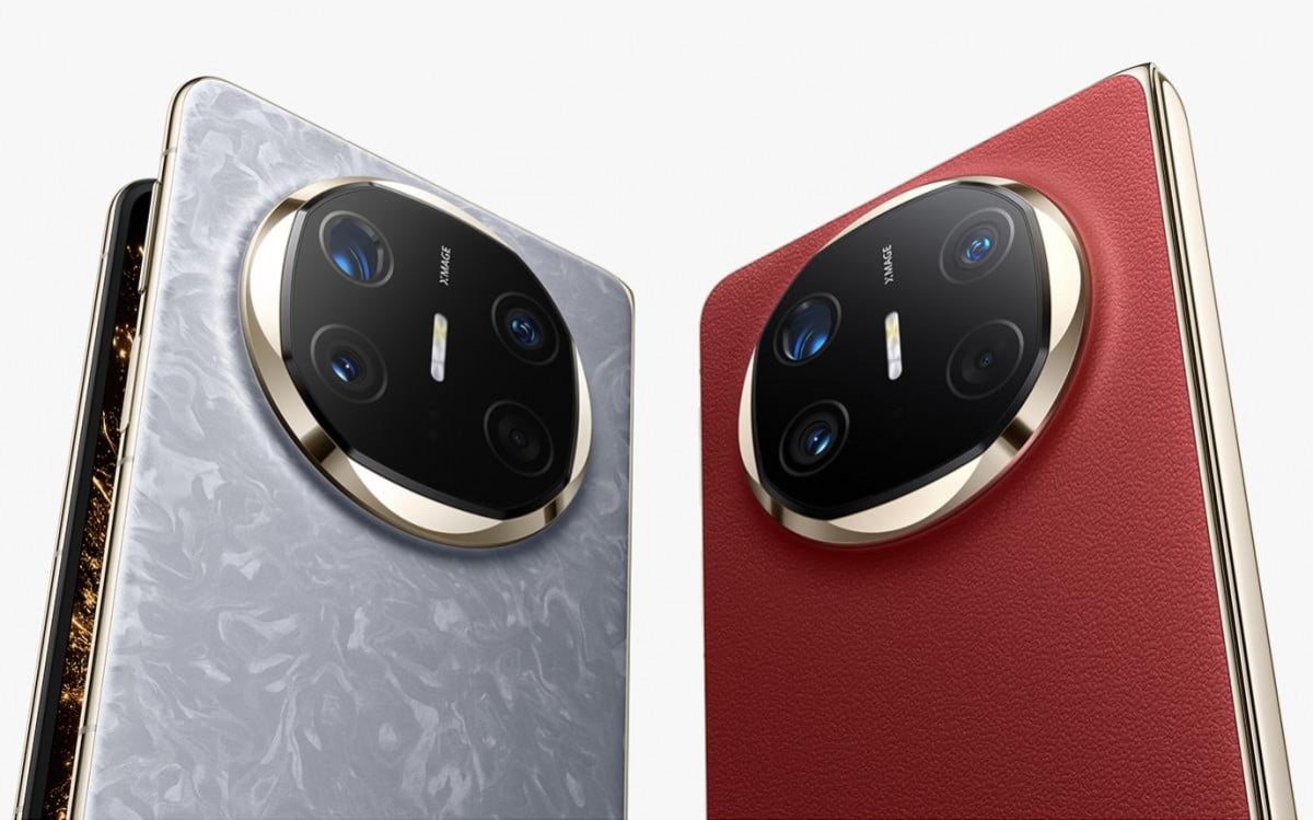 Jak widać Huawei korzysta tutaj z podobnego designu co w Mate XT Ultimate – mamy więc luksusowy, elegancki wygląd ze złotymi ramkami i obramowaniem wyspy aparatów. Na zdjęciu pokazano dwa warianty kolorystyczne – szary (Nebula Ash) ze szklanym wykończeniem oraz czerwony ze skórzanym. Opcja Red Lether przypomina podwójnie składany smartfon. Sklep zdradził jeszcze istnienie wersji czarnej, białej i niebieskiej, jednak nie pojawiły się one na zdjęciu, więc nie wiemy, jak dokładnie będą wyglądać. Na grafice widać też płaski przycisk zasilania, co zwiastuje, że będzie on zintegrowany z czytnikiem linii papilarnych. Wyspa jest okrągła z symetrycznie ustawionymi sensorami i lampą błyskową na środku.