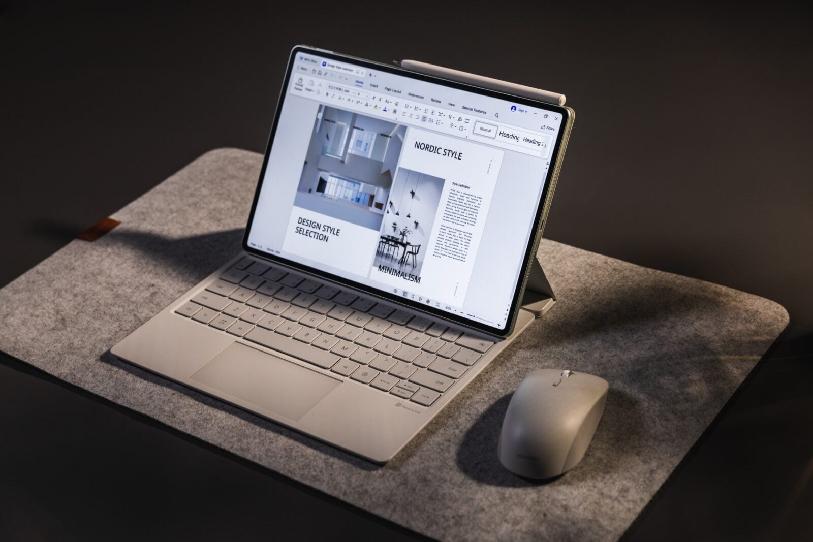 Jak wspomniałam, HUAWEI MatePad Pro 12.2” 2025 ma szereg akcesoriów, które zwiększają użyteczność. W zestawie z nim znalazły się: klawiatura HUAWEI Glide, rysik HUAWEI M-Pencil 3. generacji oraz myszka bezprzewodowa HUAWEI NearLink CD23-R. Są one lekkie, obsługują dodatkowe gesty i sprawiają, że korzystanie z nich jest czystą przyjemnością, niezależnie od tego, czy robimy to w domu, czy też w podróży. Warto tu wspomnieć, że muszka pozwala na płynnie przełączanie się między trzema urządzeniami, co większa produktywność. Rysik i muszka wykorzystują połączenie NearLink, co minimalizuje opóźnienia między ruchem ręki a reakcją na ekranie. Dzięki temu zestawowi nasza praca i kreatywność wzniosą się na wyższy poziom.
