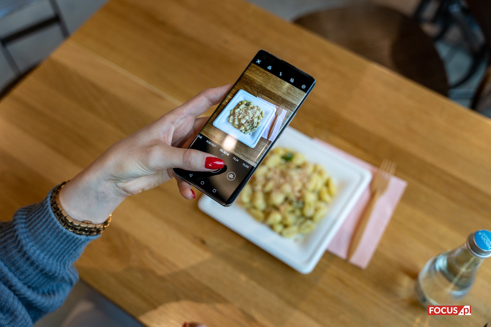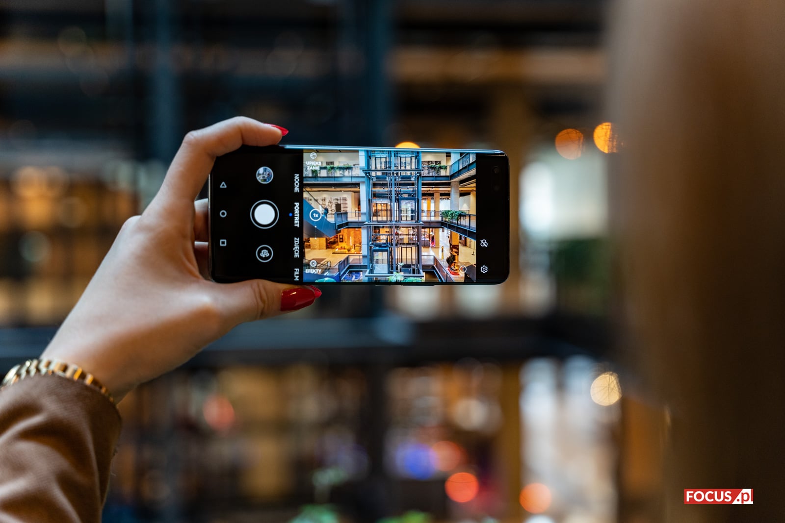 Aparat główny z tyłu obudowy jest nie tylko efektownie otoczony ładną ramką, ale też potrafi zrobić bardzo dobre zdjęcia. Do dyspozycji mamy aparat o rozdzielczości 50 Mpix z zaawansowanym, hybrydowym autofocusem oraz aparat ultra-szerokokąny o rozdzielczości 8 Mpix. Trzeci obiektyw widoczny z tyłu to czujnik głębi ostrości. Tutaj również otrzymujemy wsparcie algorytmów sztucznej inteligencji, które optymalizują kolory wykonanych zdjęć. W praktyce możemy mówić o ich obróbce w czasie rzeczywistym. Tylko smartfon robi to całkowicie za nas. Efekty są bardzo dobre.