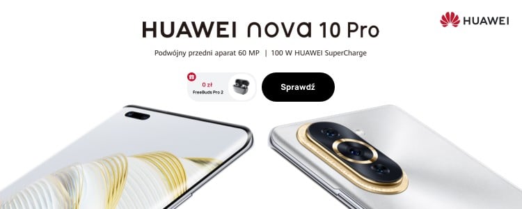 Huawei przyzwyczaił nas, że premierom nowych urządzeń towarzyszą ciekawe akcje promocyjne i nie inaczej jest w tym przypadku. Regularne cena nova 10 Pro wynosi 2 999 zł. W dniach od 28 września do 9 października przy zakupie Huawei nova 10 Pro dostaniemy w prezencie za symboliczną złotówkę słuchawki FreeBuds Pro 2 o rynkowej wartości 899 zł. Smartfon będzie dostępny w sieciach handlowych Media Expert, RTV Euro AGD, Media Markt, x-kom i Komputronik. Urządzenia będą także dostępne w oficjalnej Strefie Marki na Allegro, na platformie Amazon oraz w Huawei Experience Store i w sklepie Huawei.pl.