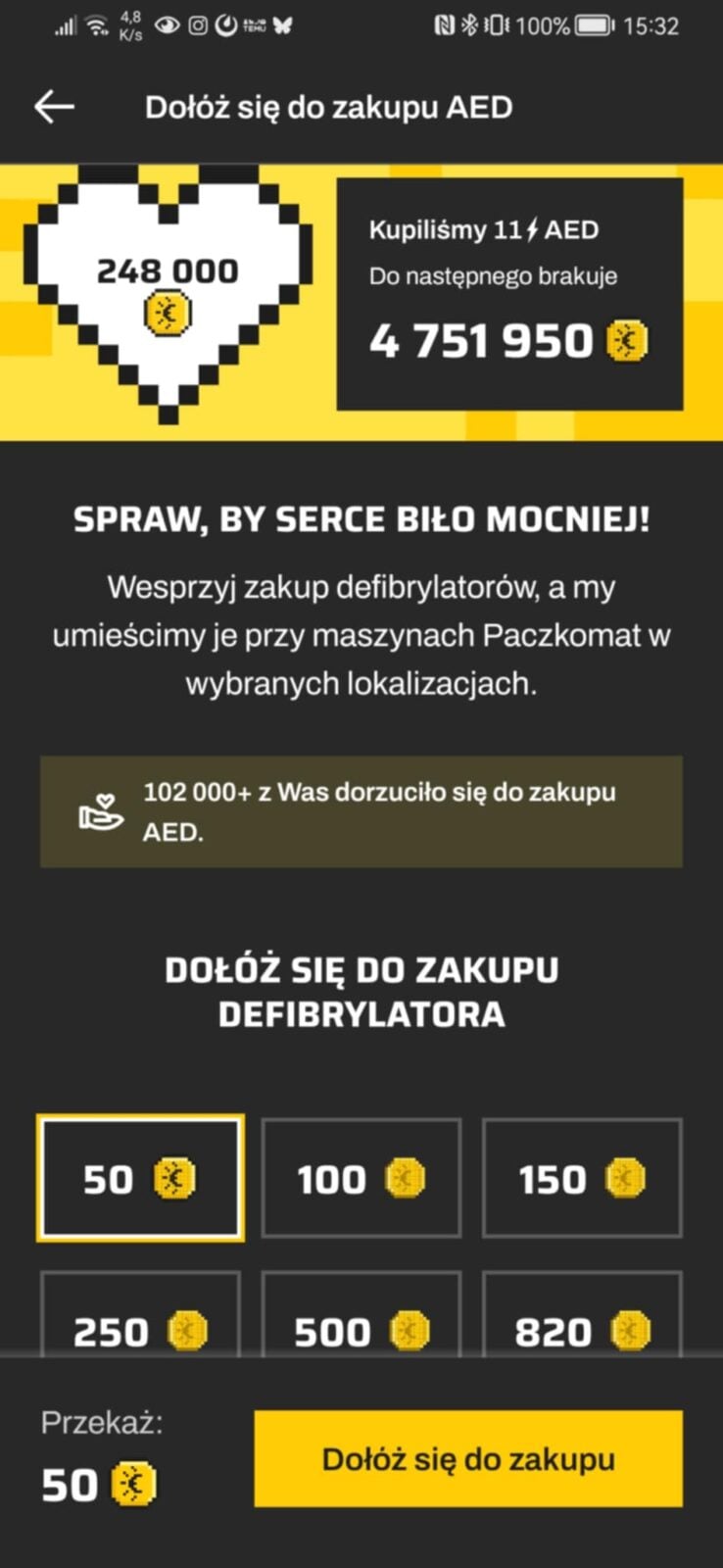 Warto jednak zauważyć, że na jeden defibrylator potrzeba 5 milionów InCoinów. W chwili pisania tego artykułu aplikacja informuje, że kupiono już 11 urządzeń, a do dwunastego brakuje bardzo niewiele. Ja już wsparłam – teraz czas na was. A dla tych, którzy nie korzystają z programu lojalnościowego, dostępna jest alternatywa: bezpośrednie wpłaty na Fundację „Polska Organizacja Ratownicza”.