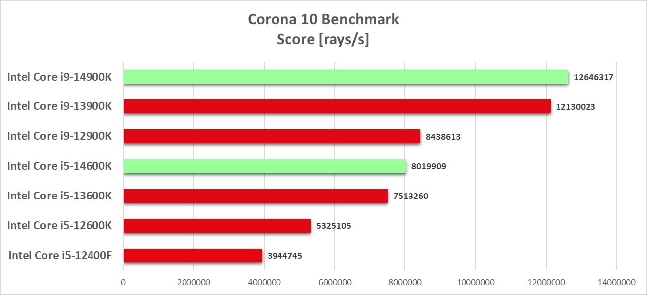 Corona to silnik renderujący dostępny dla Autodesk 3ds Max oraz Cinema 4D. Nie wspiera on renderowania na GPU, więc wydajność CPU jest tutaj kluczowa. W testach skorzystałem z benchmarka przygotowanego przez twórców.