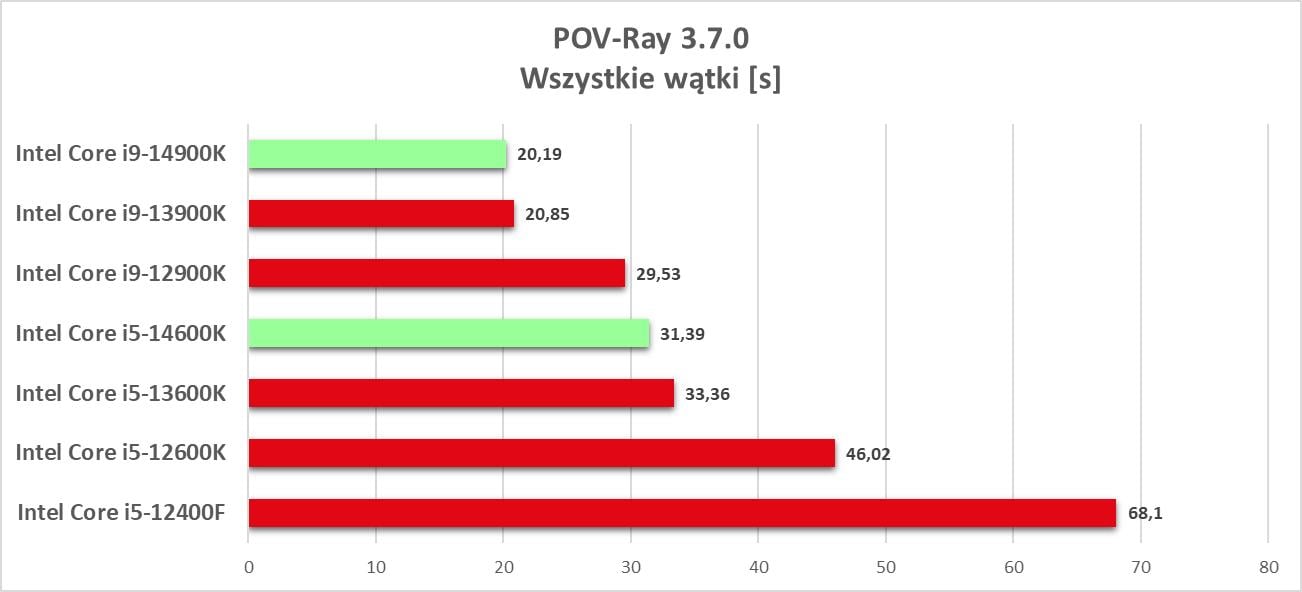 POV-Ray to kolejny program, który pozwala na tworzenie obrazów z wykorzystaniem ray tracingu i służy głównie do tworzenia grafiki 3D. W testach wykorzystałem benchmark jedno i wielowątkowy.