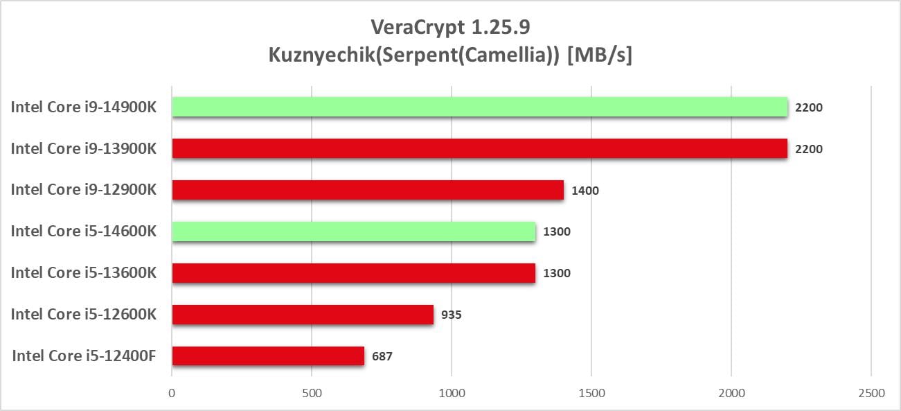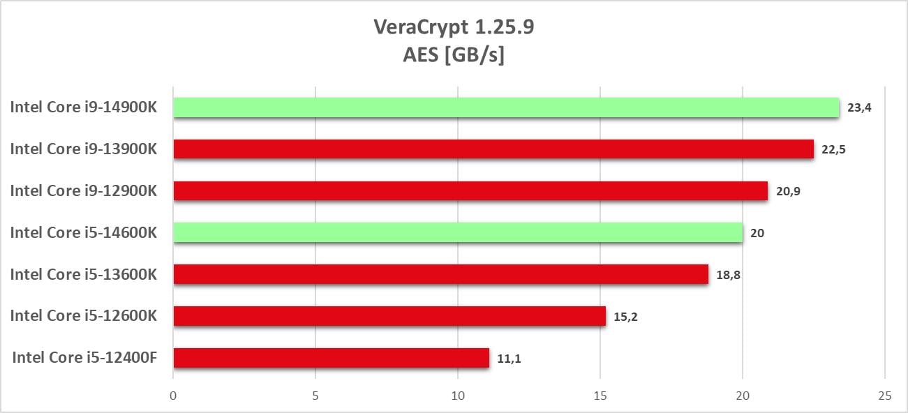 VeraCrypt to oficjalny następca kultowego TruCrypt. Oprogramowanie jest open-source przez co jest naprawdę popularne. Program ma wbudowany benchmark, który wykorzystałem w sprawdzeniu wydajności procesorów. Przeprowadziłem tutaj testy algorytmów: AES, Twofish(Serpent) oraz Kuznyechik(Serpent(Camellia)).