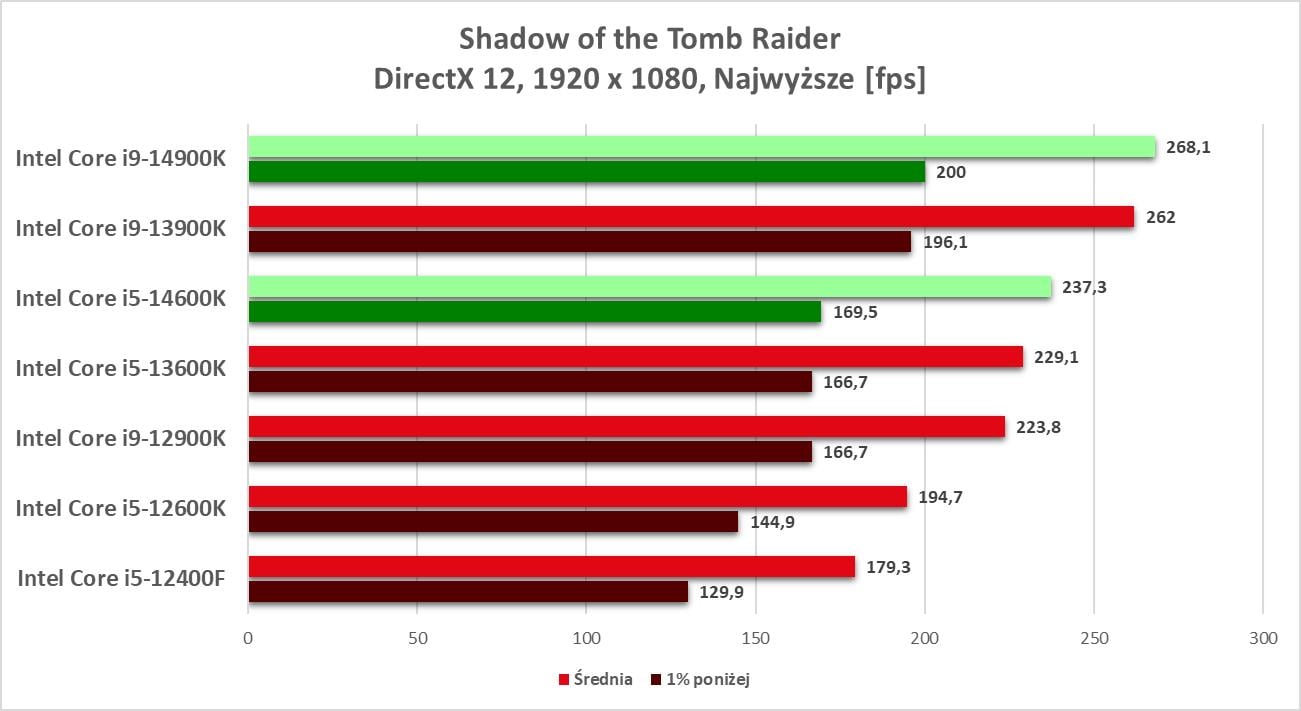 Czy więc warto kupić obie jednostki? Moja opinia na temat tych dwóch modeli będzie taka sama. Oczywiście są one wydajniejsze od poprzedników, ale różnice nie są wcale duże. Jeśli więc macie już i5-13600K lub i9-13900K to wymiana ich na 14. generację kompletnie mija się z celem. Również jeśli budujecie nowy sprzęt, czy zmieniacie starsze procesory to jeśli traficie na dużo niższe ceny poprzedników (np. jakąś promocję w sklepie) to w takim wypadku również lepiej zainwestować w starszy model 13. generacji, a większą różnicę w cenie przeznaczyć na inny podzespół. Ale jeśli budujecie nowy sprzęt czy modyfikujecie starszą platformę i ceny w sklepach będą podobne, lub różnica będzie niska, to w takim wypadku warto jednak sięgnąć już po nową jednostkę. W takim przypadku uważam, że zakup nowych procesorów ma sens. Pamiętajcie też, że i5-14600K oferuje naprawdę dobrą wydajność w programach czy grach jak na swoją cenę, a i9-14900K to aktualnie najwydajniejsza jednostka niebieskich. Nie jestem w stanie jednak obu modeli jednoznacznie polecić, bowiem zawsze oczekiwania względem nowej generacji są większe niż te kilka procent przyrostu wydajności.