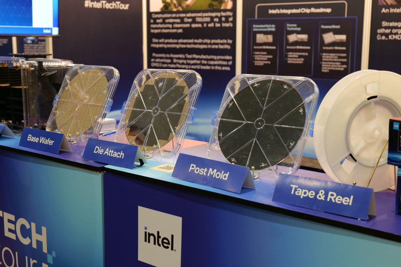Najpierw niezbędne są wcześniej wytworzone i wycięte kości, które docierają w formie przypominającej taśmę filmową do fabryki w Penang. Te także wycina się w jednym z laboratoriów Intela w Malezji, choć odbywa się to w Kulim (o tym miejscu później). Pierwszym krokiem w Intel Penang Assembly and Test jest zamocowanie tych kości na podłożach PCB. Po odseparowaniu ich od taśmy trafiają na platformę, gdzie są precyzyjnie umieszczane na podłożach PCB.