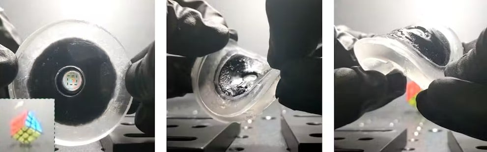 Chociaż siłowniki i chwytaki w robotach od dawna wykorzystują miękkie materiały, integracja miękkich systemów optycznych była problematyczna. Tradycyjne miękkie soczewki często wymagały kieszeni wypełnionych cieczą lub siłowników, które nie mogły działać bez elektroniki. Dodawanie tych elementów zwiększało złożoność, ryzyko uszkodzeń i wymagało niewygodnych połączeń kablowych. PHySL, aktywowany światłem, eliminuje potrzebę stosowania elektroniki i związanych z nią problemów.