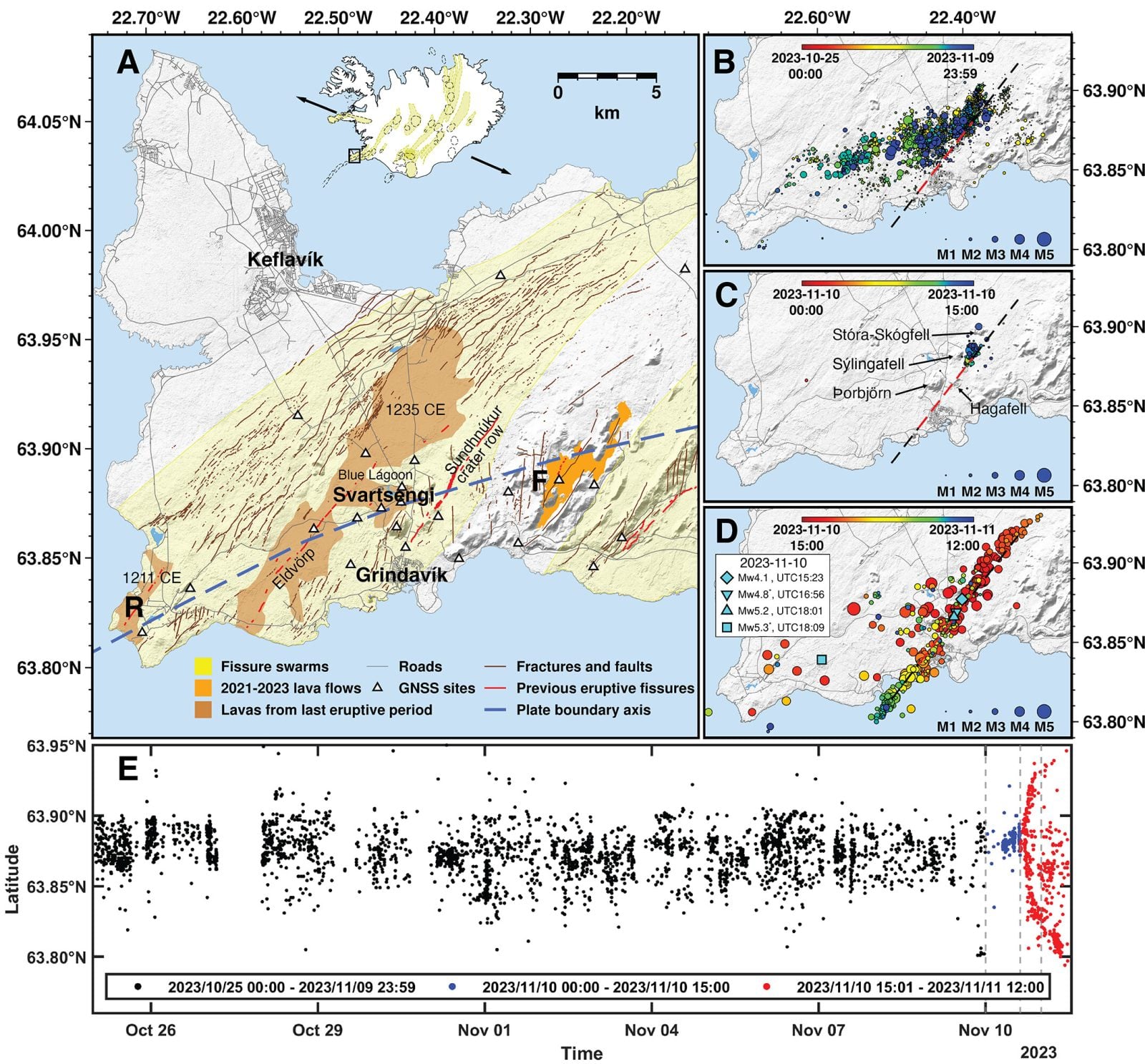 Naukowcy analizowali pierwszy epizod erupcyjny z listopada 2023 roku. Przeprowadzili szereg obliczeń związanych z naprężeniami w skorupie ziemskiej, rozchodzeniem się fal sejsmicznych oraz zbadali zasięg podziemnej komory magmowa w formie 15-kilometrowego wału, która zaczęła się tworzyć pod półwyspem Reykjanes.