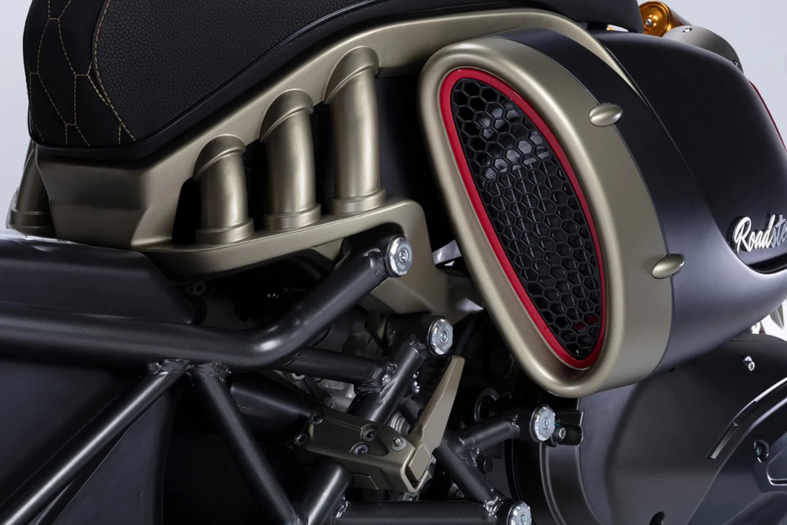 Design Roadstera to prawdziwa mieszanka stylów i epok. Charakterystyczne wloty powietrza w kształcie turbin samolotowych pełnią funkcję praktycznych kanałów chłodzących, kierujących powietrze do podwójnych chłodnic. Wyprofilowane panele boczne i kratownicowa rama nawiązują do lotniczych inspiracji, tworząc unikalną kombinację retro-elegancji i futurystycznych rozwiązań.