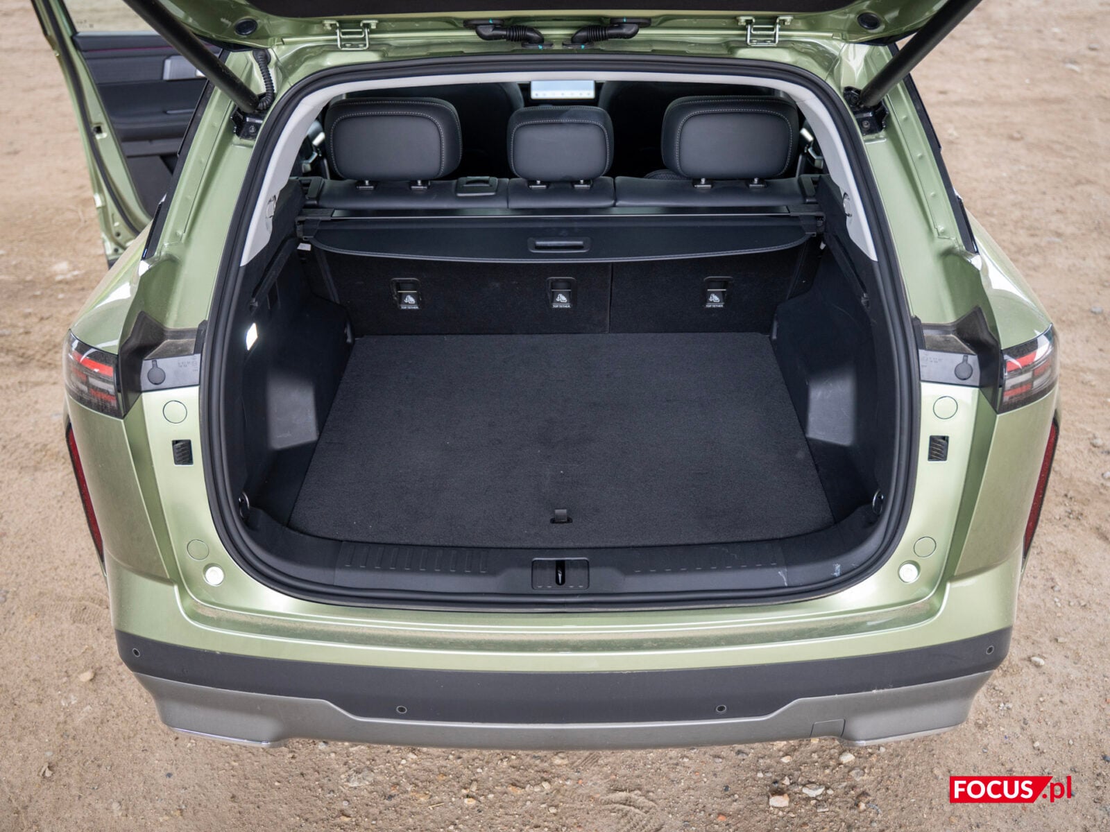 A co z tyłu? Tam jest zaskakująco przestronnie. Kanapa jest lekko zapadnięta, co daje wrażenie siedzenia w większym aucie, a ogromne panoramiczne okno dachowe potęguje poczucie przestrzeni. Pasażerowie z tyłu mają do dyspozycji podgrzewane siedzenia, rozkładany podłokietnik i porty USB-A oraz USB-C. Podróżowanie z tyłu jest naprawdę komfortowe i tu też nie ma się do czego przyczepić. Bagażnik w wersji Off-Road ma 480 litrów (564 litry w Urban), co w zupełności wystarczy na rodzinny wyjazd czy większe zakupy. Elektrycznie otwierana klapa z regulacją wysokości to praktyczny dodatek, szczególnie na niskich parkingach podziemnych. Podłoga bagażnika jest płaska, co ułatwia załadunek, a w razie potrzeby można złożyć tylną kanapę, zwiększając przestrzeń. W Jaecoo 7 przy rozłożonej kanapie zmieściłem krzesło biurowe i sporą walizkę, przy tym nadal było mnóstwo miejsca, więc jest sporo przestrzeni na załadunek.