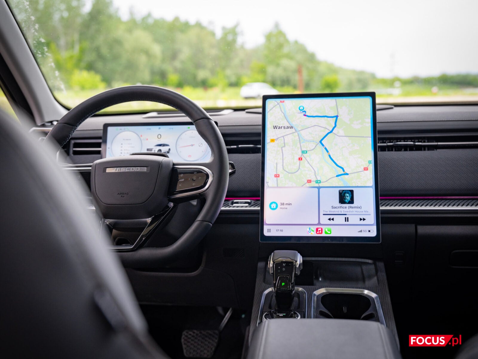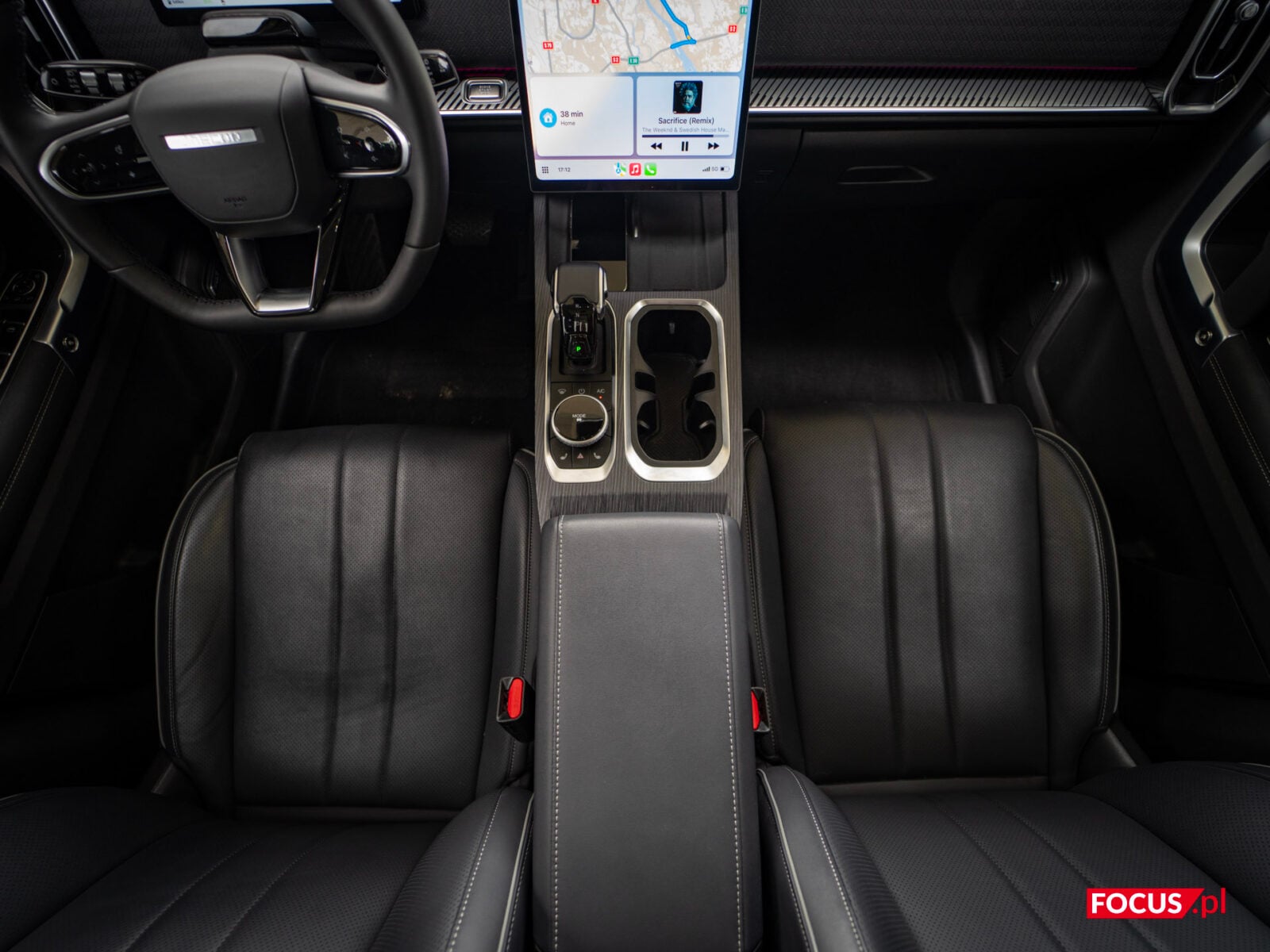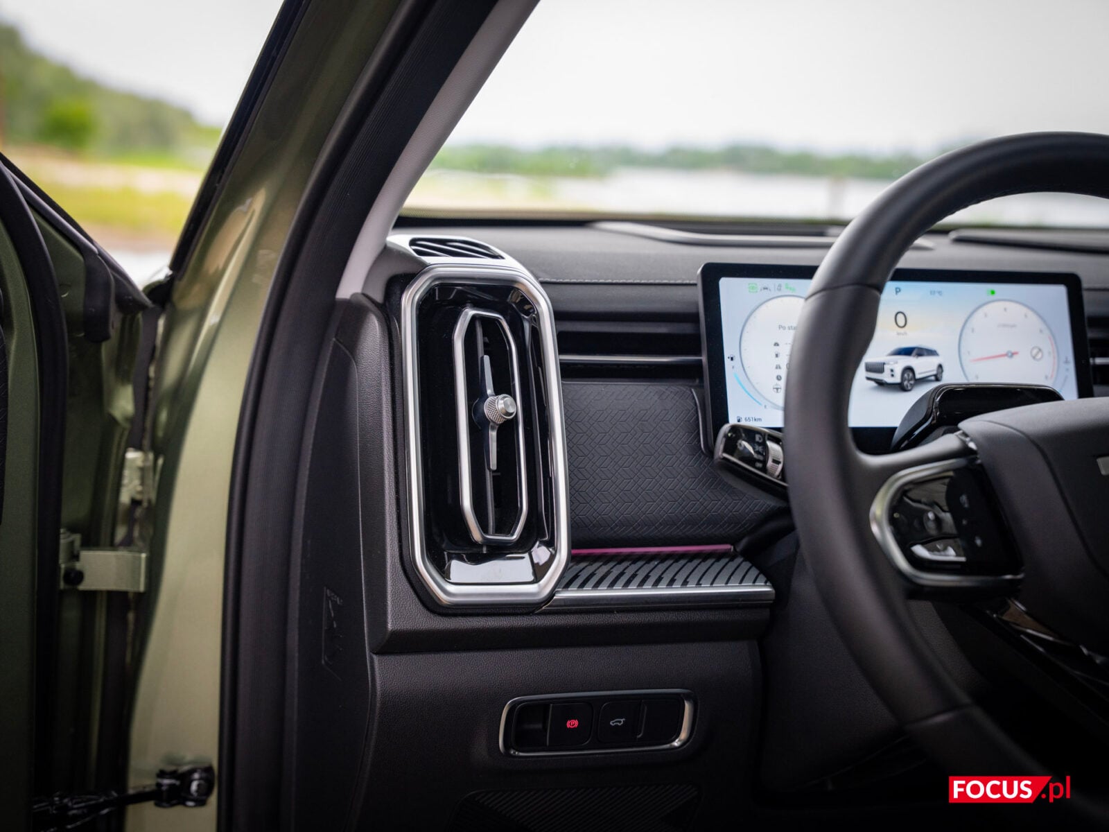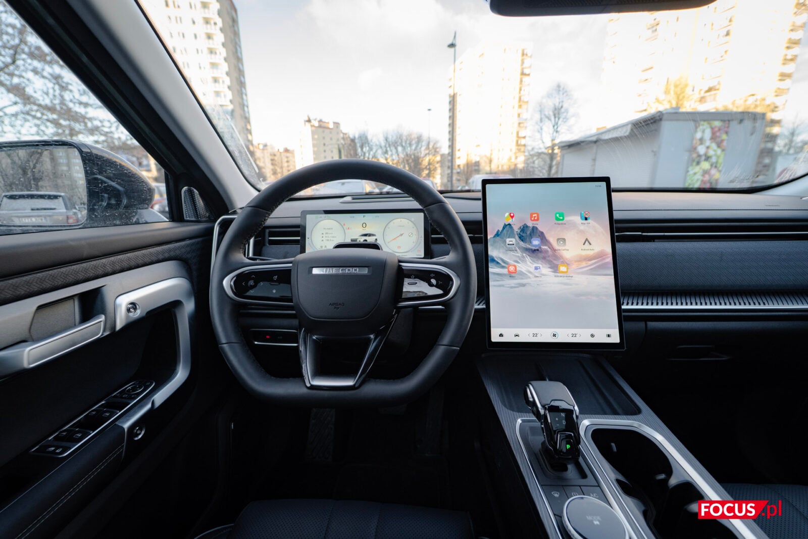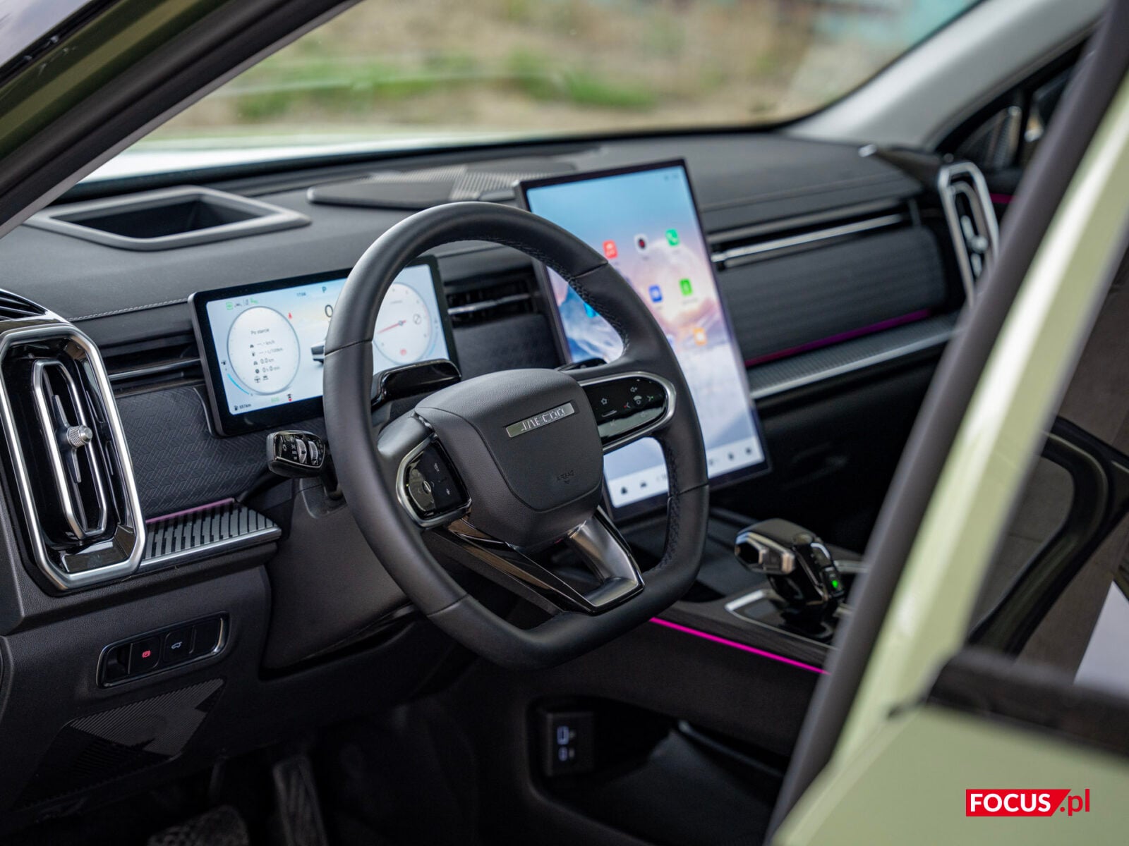 Mieszane uczucia mam jednak do kierownicy, z jednego prostego powodu — i to też jest domena chińskich samochodów. Nie jestem tradycjonalistą w kwestii przycisków w samochodach; obsługa wszystkiego z ekranu absolutnie mi nie przeszkadza, wręcz jest dla mnie intuicyjna, ale jeśli już gdzieś pojawiają się przyciski, to lubię, jak są one fizyczne. Na kierownicy niestety mamy plastik, który cały jest panelem dotykowym — oznacza to, że możemy kliknąć go dosłownie wszędzie, i musimy wycelować dokładnie w wybrany symbol, żeby cokolwiek się wydarzyło. To przekłada się na fakt, że trudno jest korzystać z tej kierownicy bez patrzenia, więc chcąc nie chcąc jesteśmy zmuszeni oderwać wzrok od drogi i opuścić wzrok, żeby cokolwiek zrobić. Irytujące.