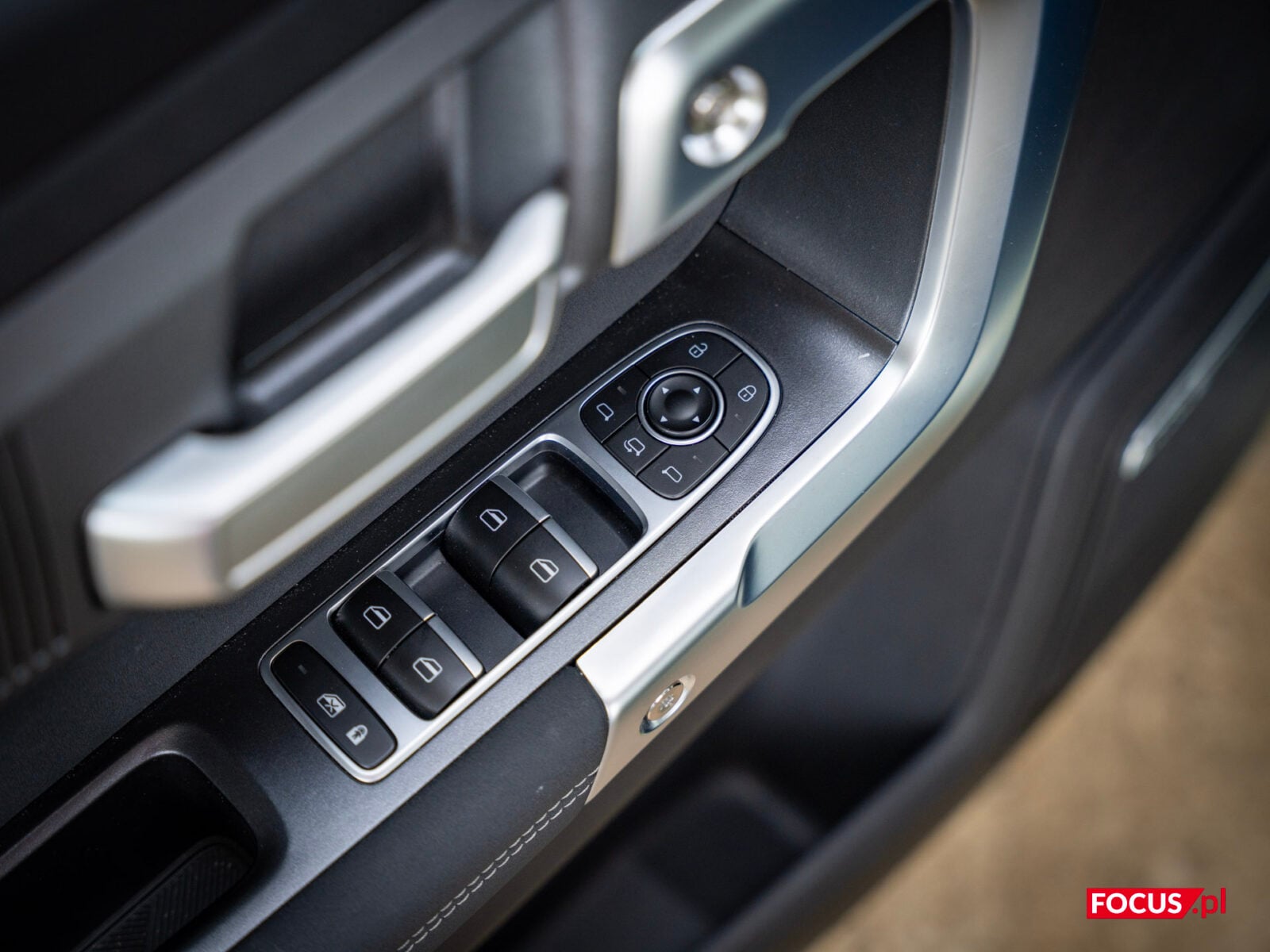 Wnętrze Jaecoo 7 od razu skojarzyło mi się z Klasą G Mercedesa — jest rzemieślniczo, ale estetycznie, elegancko i nowocześnie. Potężne nawiewy, osłony głośników na słupkach A, klamki i uchwyt na drzwiach, a nawet sama deska rozdzielcza. Takiego wnętrza po tym samochodzie się nie spodziewałem, ale to zdecydowanie pozytywna niespodzianka. Generalnie wszystko to tworzy harmonijną całość, która cieszy oko i dłoń. Plastiki, jeśli już są, schowano w mniej eksponowanych miejscach, a elementy, z którymi mamy kontakt, są pokryte przyjemnymi w dotyku materiałami. Naprawdę trudno uwierzyć, że dostajemy to wszystko w pakiecie za mniej niż 200 tysięcy złotych.