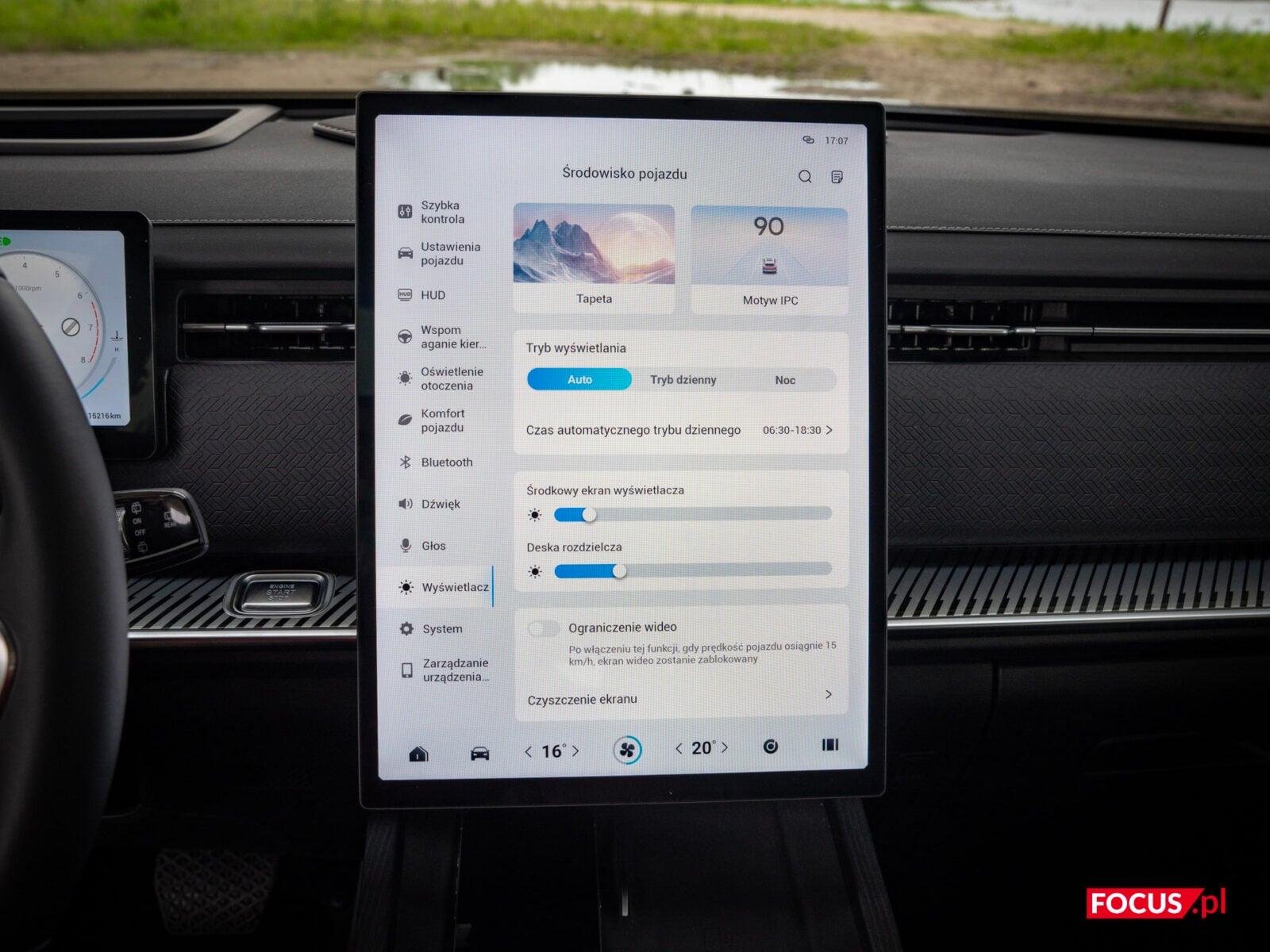 Poza głównym wyświetlaczem mamy mały ekran przed kierowcą, który oferuje dwa tryby wyświetlania — cyfrowy i klasyczny. Całość jest równie czytelna, choć skromna w opcjach personalizacji. Pokazuje jednak przydatne informacje, jak ostrzeżenia o pojazdach w martwym polu czy uproszczoną wizualizację drogi, przypominającą tę z Tesli. Mamy również HUD, także wyświetlaczy jest tu naprawdę sporo, ale to zdecydowanie nie jest powód do narzekania.