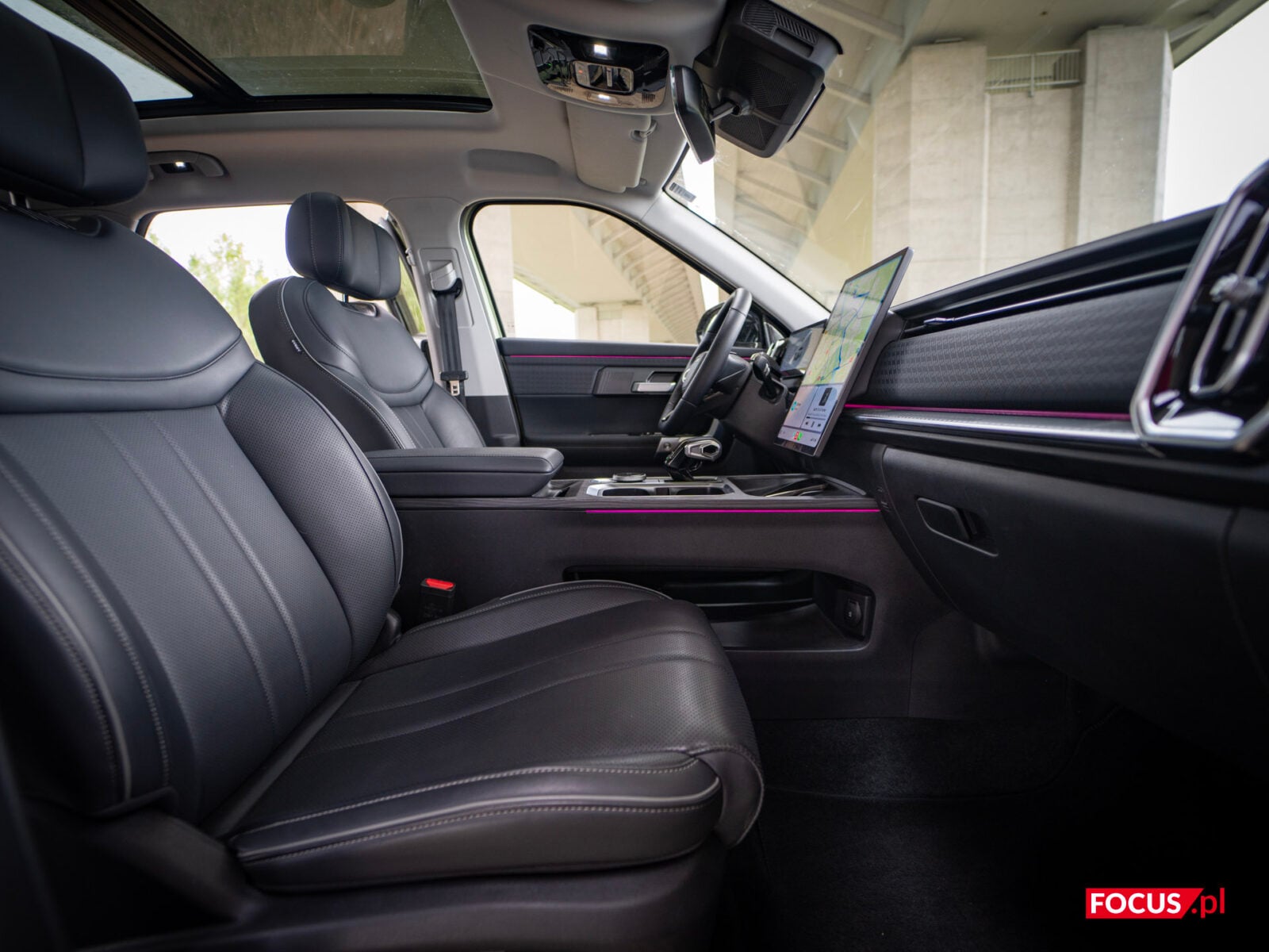 Podświetlenie jest nie tylko przyjemne dla oka i widoczne w całym samochodzie, ale też w pełni konfigurowalne. Możemy sami zmienić jego kolor na dowolny, ustawić płynne przejścia kolorów w różnych efektach lub nawet wyklikać opcję, żeby ambient reagował na odtwarzaną aktualnie muzykę. To ostatnie nieco rozprasza podczas jazdy, ale warto taki smaczek docenić.