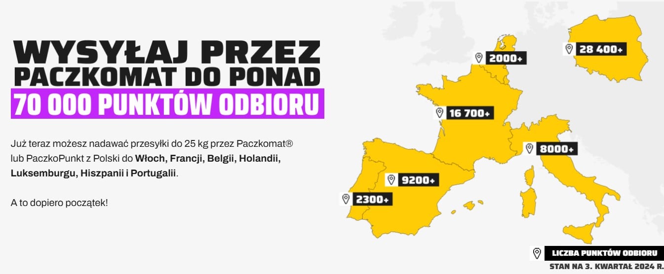 InPost umożliwia nadawanie paczek z Polski do kilku krajów europejskich, takich jak Belgia, Francja, Hiszpania, Holandia, Luksemburg, Portugalia i Włochy. Paczki mogą być nadawane i odbierane w punktach PUDO (Pick Up/Drop Off) oraz przez Paczkomat. Jest to rozwiązanie wygodne, ponieważ umożliwia nadanie i odbiór przesyłki w dogodnym dla odbiorcy czasie, bez konieczności czekania na kuriera.