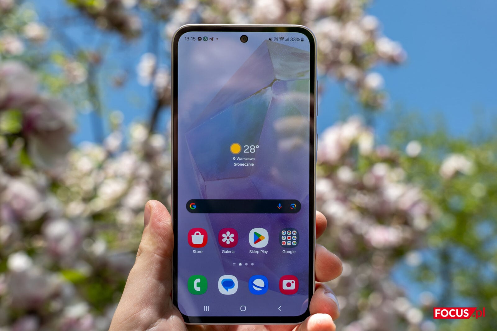 Samsung przyzwyczaił też do odpowiedniego poziomu w innych aspektach. Dobrze wypada płaski ekran Super AMOLED o przekątnej 6,6 cala i z odświeżaniem do 120 Hz. Niby z jednej strony to rynkowy standard, ale poza kątami widzenia prezentuje się on udanie, oferując żywe kolory, dobrą jasność maksymalną i ustawienia do kontroli obrazu. Do tego producent dorzuca solidny głośnik, więc do oglądania Youtube’a i filmów smartfon jak najbardziej się nada. Podobnie można powiedzieć o jego wydajności – Exynos 1380 nie jest słabą jednostką, ale z pewnością nie ma w sobie topowej wydajności, a w parze z 6 GB RAM-u w większości wersji będzie to raczej smartfon do lekkich zadań.