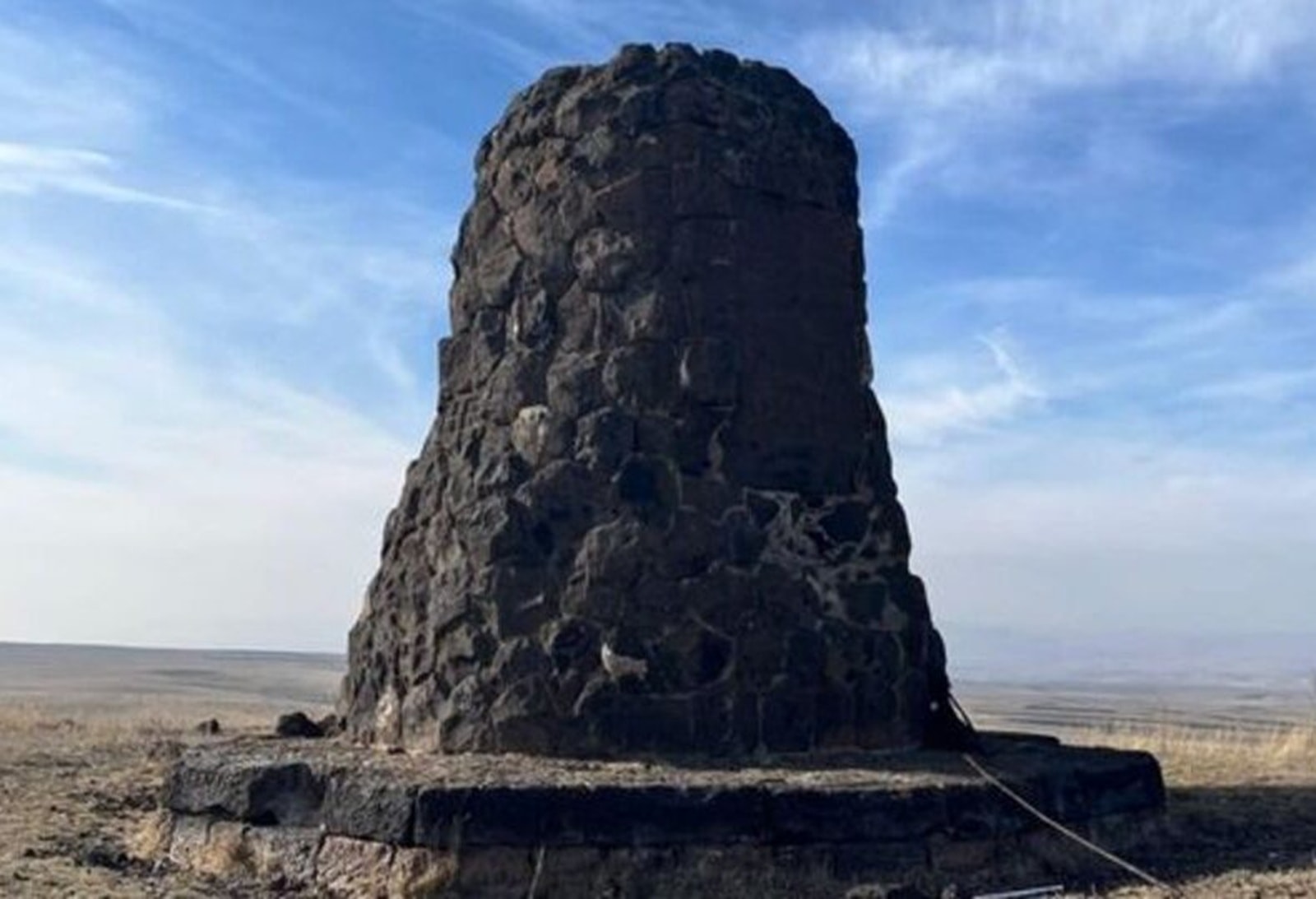 Układ kamieni przypomina formacje w stylu kurhanów, wykorzystywanych w różnych okresach historycznych do nawigacji, upamiętnienia ważnych wydarzeń lub zaznaczania granic na terenach Wschodniej Anatolii i Azji Centralnej. Pionowy kształt i usytuowanie na wyniosłym grzbiecie przywodzą na myśl proste, kamienne punkty obserwacyjne spotykane w górskich rejonach Kaukazu. Materiał budowlany również dostarcza pewnych wskazówek. Tekstura i barwa kamieni sugerują użycie bazaltu lub innego lokalnie dostępnego materiału wulkanicznego. Wiele starożytnych konstrukcji w okolicach Ani i na wyżynach wykorzystywało podobne typy skał, co może świadczyć o regionalnych tradycjach budowlanych.