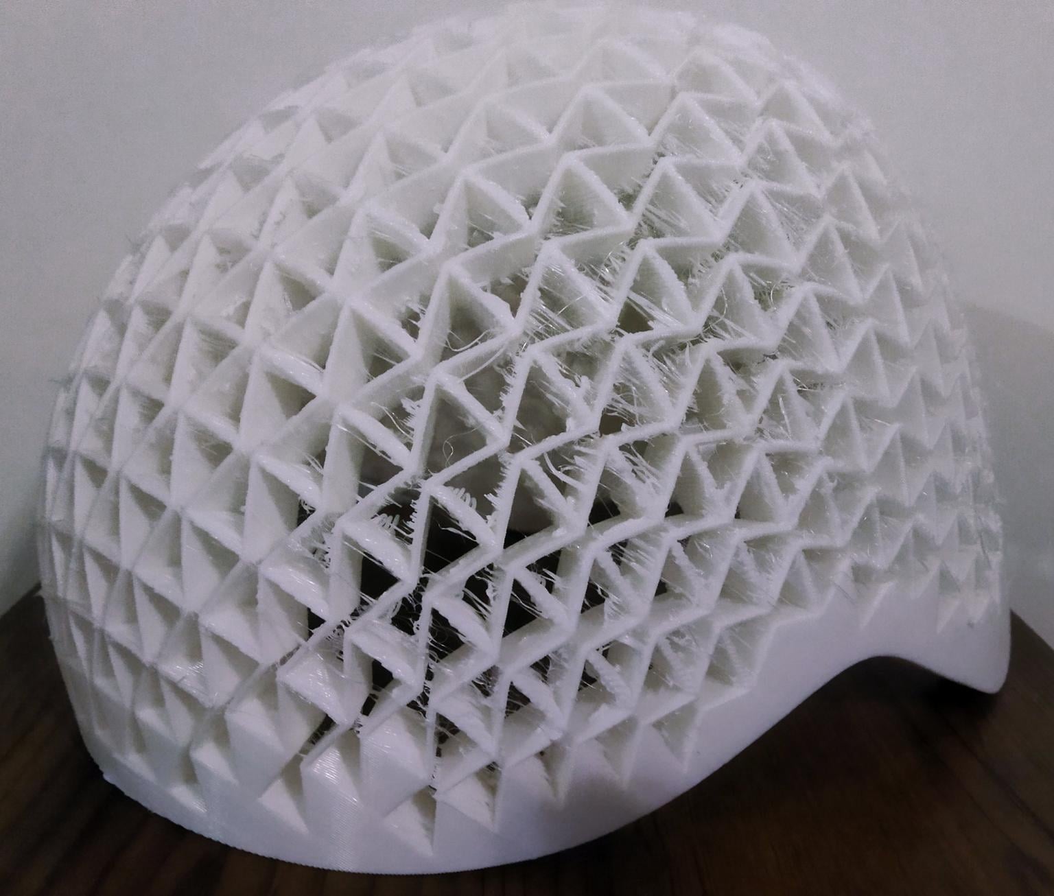 Warstwa ochronna kasku została wydrukowana w technologii 3D z użyciem hiperelastycznego polimeru – rodzaju plastiku, który może ulegać znacznym odkształceniom i powracać do pierwotnego kształtu. Tego typu materiały są niezwykle trwałe, a zarazem lekkie. Nowy kask przeszedł standardowe testy zderzeniowe obejmujące dwa główne typy uderzeń: czołowe i boczne. We wszystkich przypadkach wykazał lepsze właściwości ochronne niż klasyczne modele dostępne obecnie na rynku.