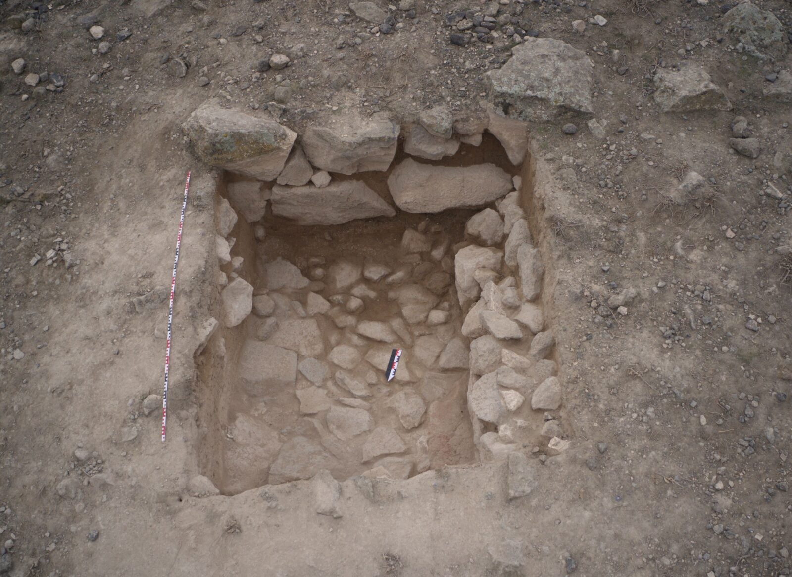 Poza fragmentami dawnych budynków archeolodzy natknęli się na pozostałości cmentarzyska popielnicowego. Skremowane szczątki umieszczano w urnach obok przedmiotów grobowych, a całość przykrywano płytką misą i umieszczano w niszy skalnej, zanim obsypywano ją cienką warstwą gruntu. Wiele urn zostało zniszczonych przez nielegalnych detektorystów, lecz co najmniej jedna przetrwała w nienaruszonej formie. Jej datowanie sięga pierwszej połowy VII wieku p.n.e. Ważnym aspektem prowadzonych badań była również identyfikacja typowych dla trzęsień ziemi uskoków. Wydaje się, iż kataklizm ten był wyjątkowo silny, ale jak na razie nie wiadomo, kiedy miał miejsce i jakie dokładnie konsekwencje przyniósł.