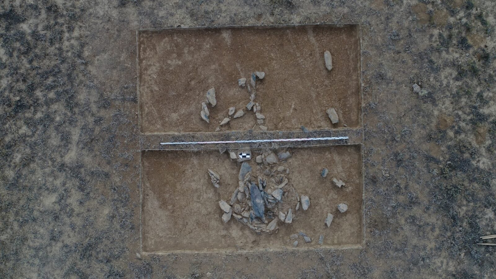Wśród dotychczas odkrytych znalazło się wiele kurhanów mających od 3 do 15 metrów średnicy. Przez środek tych okrągłych obiektów przechodzą kamienne nasypy, które przecinają się i mogą przywodzić na myśl krzyże. Jeden z odkrytych kopców, pozbawiony wspomnianych wąsów, został objęty wykopaliskami. Te odsłoniły szczątki mężczyzny. Jak na razie nie wiadomo, kim był za życia, ani w jakich okolicznościach jego żywot dobiegł końca. Zapewne uda się odpowiedzieć na te pytania dzięki dalszym analizom kości.