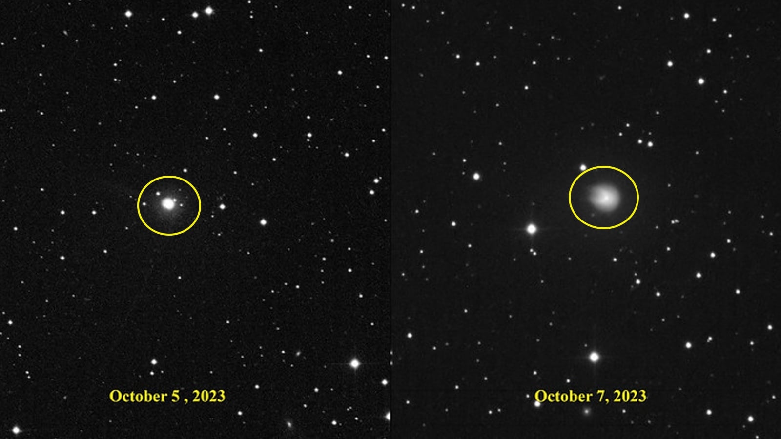 Wracając jednak do “rogów” komety, to jest to już drugi raz w ciągu ostatnich kilku miesięcy, kiedy takowe się pojawiły. Po raz pierwszy rogi zauważono 20 lipca, kiedy jasność komety gwałtownie wzrosła, a otaczająca jądro koma rozciągnęła się do 230 000 km. Podczas drugiej erupcji wzrost jasności był dwa razy intensywniejszy, nie wiadomo jednak jakie rozmiary osiągnęła podczas niego koma, która w ciągu ostatnich dwóch tygodni wróciła do swoich normalnych rozmiarów. Warto jednak zwrócić uwagę na fakt, że kometa wciąż znajduje się na etapie zbliżania do Słońca, a to oznacza coraz więcej promieniowania słonecznego, coraz wyższe temperatury, a tym samym całkiem możliwe, że jeszcze kilka erupcji kriowulkanicznych przed nami.