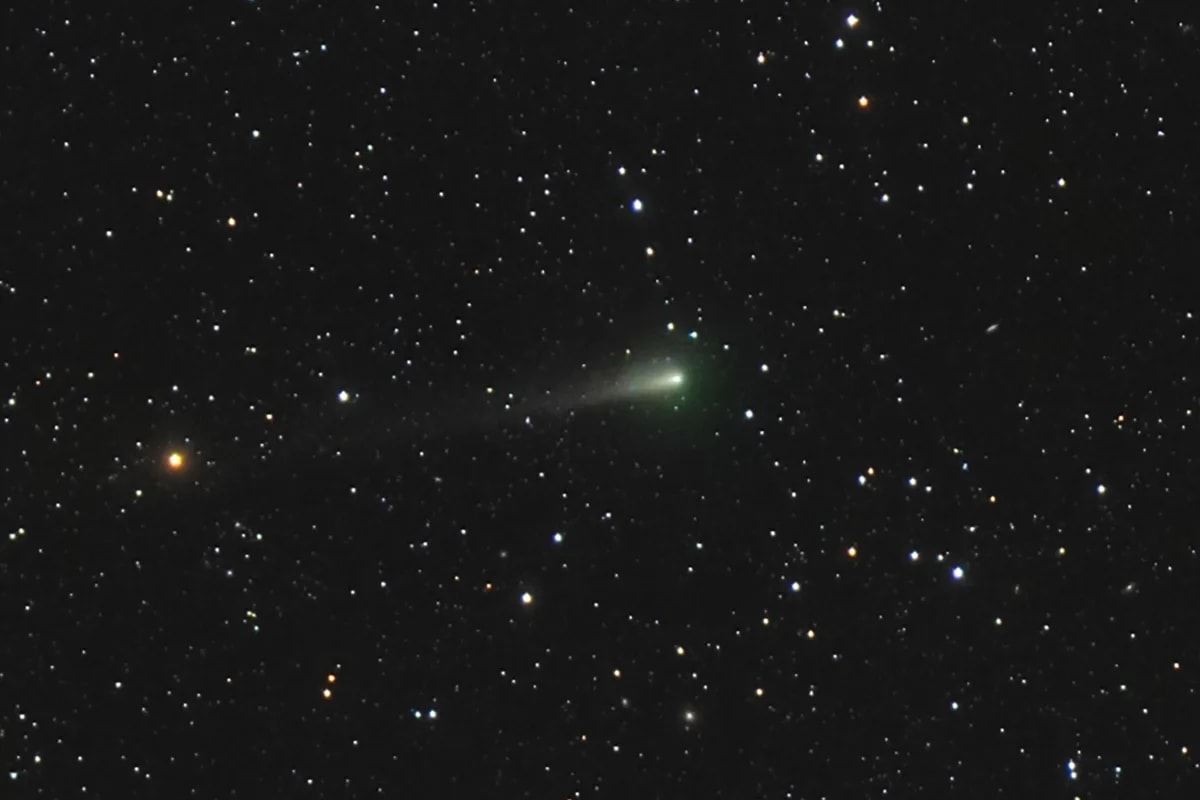 Obecnie kometa osiągnęła jasność 9 magnitudo, co oznacza, że można ją dostrzec przez zwykłą lornetkę lub niewielki teleskop amatorski. Dan Bartlett, laureat konkursu Astronomy Photographer of the Year 2025, utrwalił ten niezwykły moment na fotografii, która wyraźnie pokazuje złoty ogon komety kontrastujący z wciąż lekko zielonkawą komą.