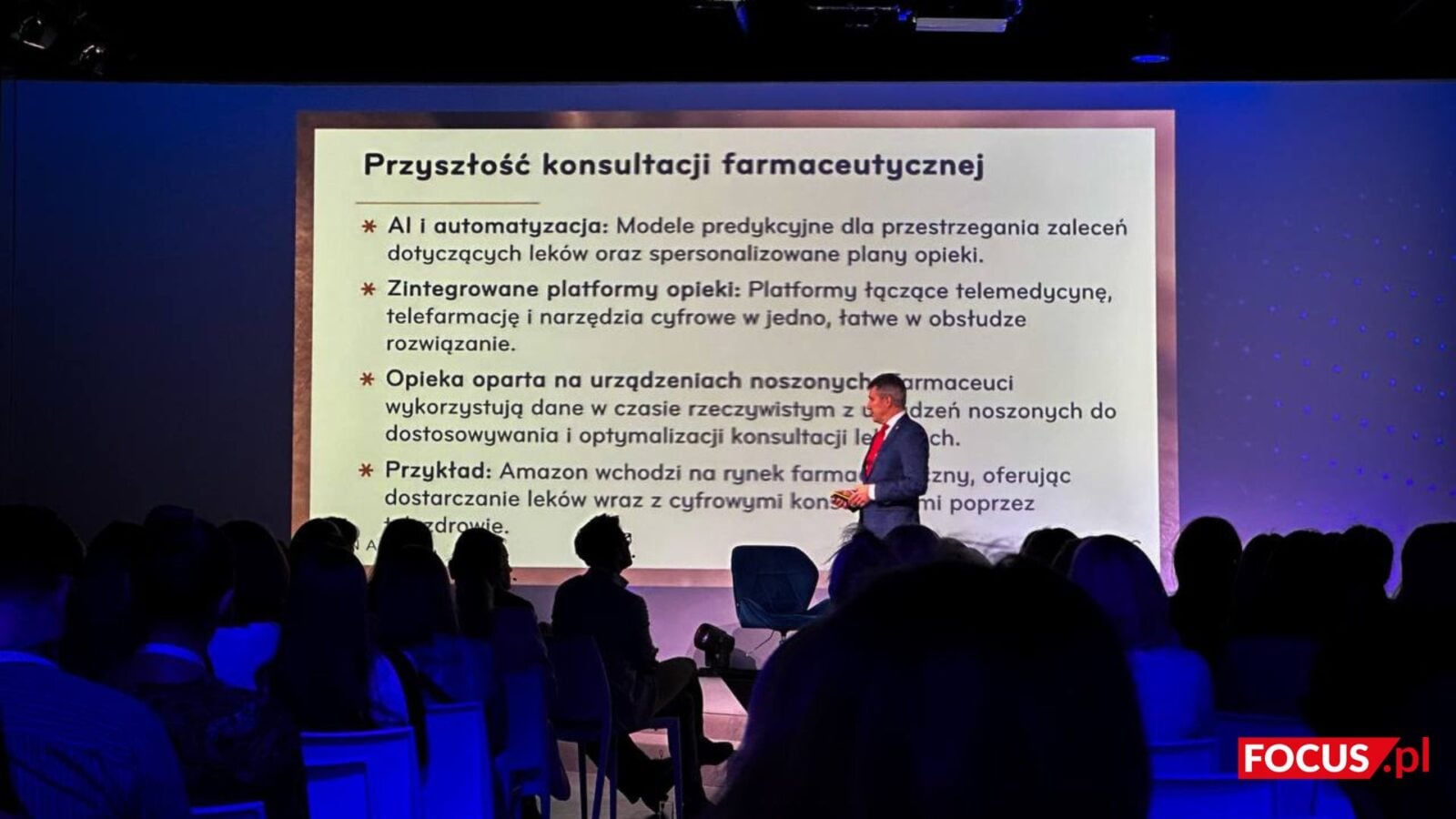 Pierwszą sesję zakończył mgr Klaudiusz Gajewski, farmaceuta i Członek Rady Okręgowej Izby Aptekarskiej, który wraz z gościnnym udziałem online dr Piotra Merksa, opowiedział, jak sztuczna inteligencja wpływa na pracę farmaceutów, umożliwiając bardziej spersonalizowaną konsultację. Z kolei rozwiązania cybernetyczne zapewniają bezpieczeństwo i umożliwiają skuteczniejsze zarządzanie zapasami leków. Prezentacja skupiła się na konkretnych przykładach technologii, ich aktualnego zastosowania w aptekach oraz potencjalnych korzyści dla pacjentów i biznesu.