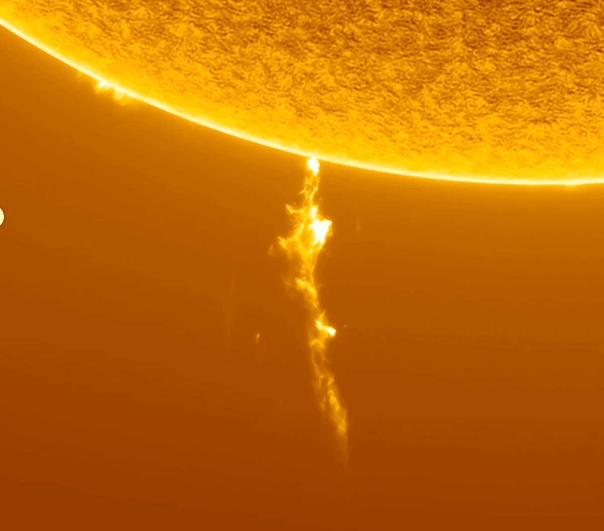 Dla przypomnienia średnica Ziemi to nieco ponad 12500 kilometrów. Średnica Słońca to już 1 400 000 kilometrów, czyli ponad sto razy więcej. W tym kontekście widoczna na zdjęciu igła plazmy wystająca z powierzchni Słońca musi mieć znaczące rozmiary. I tak faktycznie jest. Badacze wskazują, że owa „niewinna smuga” ma długość około 200 000 kilometrów, a więc 15 razy więcej niż średnica Ziemi. Świadomość tych monstrualnych rozmiarów struktury, która w krótkim czasie powstała i w krótkim czasie zniknęła, pozwala sobie uświadomić nie tylko, jak nieistotna jest Ziemia we wszechświecie, ale nawet w obliczu rozmiarów Słońca, wokół którego krąży.