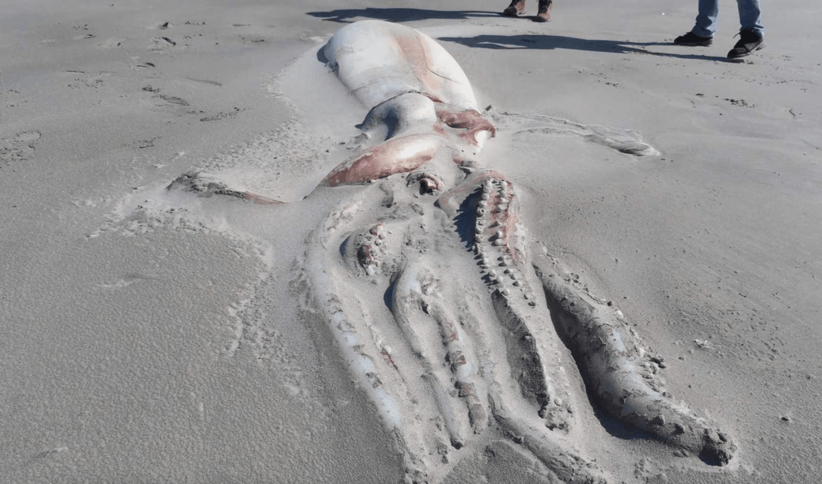 Wyglądało to tak, jakby macki zostały przeżute z powrotem przez jakieś inne morskie stworzenia, np. rekina. Chociaż nie wiem na pewno, wyobrażam sobie, że to szczątki unosiły się w wodzie przez jakiś czas i po jakimś czasie zostały wyrzucone na brzeg.