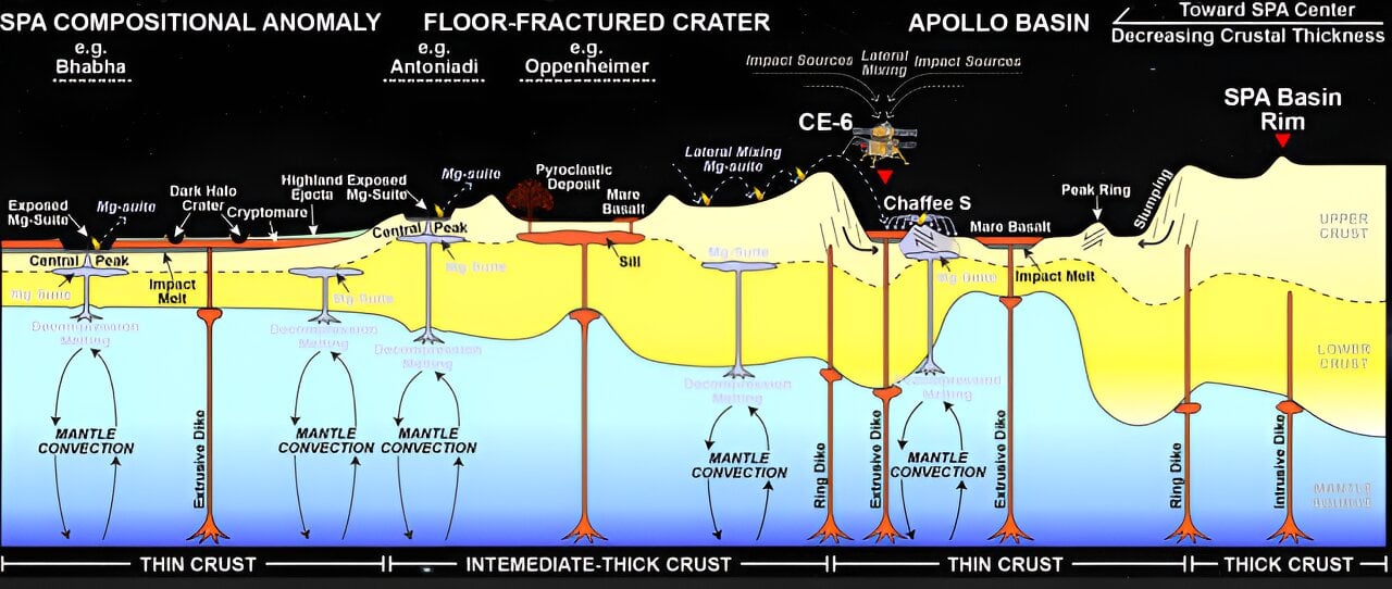Naukowcy zakładają zatem, że sonda Chang’e-6 lądując w kraterze, zebrała i przywiozła na Ziemię skały plutoniczne, które mogły zostać wybite z innych kraterów, a następnie opaść na dno krateru SPA.