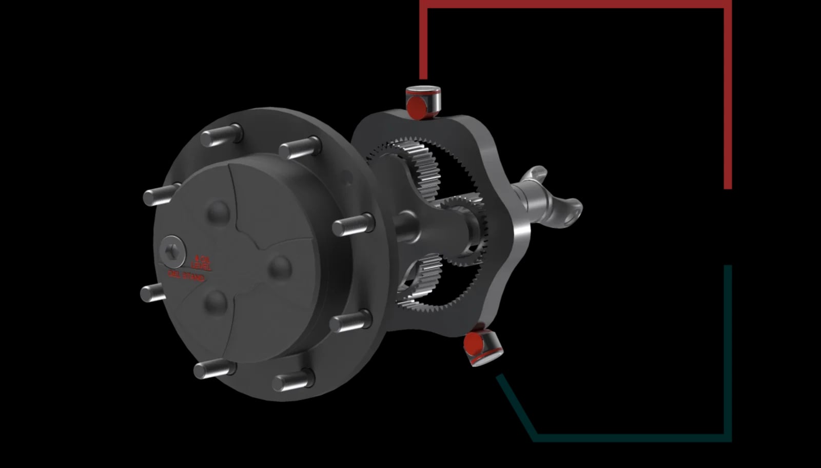 Kluczową innowacją jest sposób montażu koła pierścieniowego w przekładniach planetarnych. Zamiast sztywnego połączenia, jest ono podłączone poprzez obwód hydrauliczny, co pozwala na precyzyjne sterowanie przez zawór proporcjonalny. Podczas skręcania system automatycznie wybiera najbardziej zewnętrzne koło jako wzorcowe, podczas gdy pozostałe dostosowują prędkości poprzez kontrolowane uwalnianie swoich kół pierścieniowych.