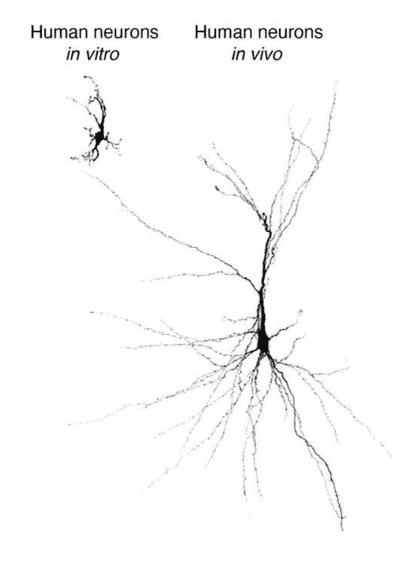 Tworzyliśmy coraz bardziej skomplikowane obwody nerwowe w naczyniach, wykorzystując organoidy i ich wyrafinowane kombinacje, zwane asembloidami. Ale neurony w tych naczyniach nadal były opóźnione w rozwoju w porównaniu z tym, co można zobaczyć w naturalnie rozwijającym się ludzkim mózgu. Brak składników odżywczych i czynników wzrostu, komórek śródbłonka tworzących naczynia krwionośne lub informacji sensorycznych utrudniają rozwój minimózgów w naczyniach laboratoryjnych.